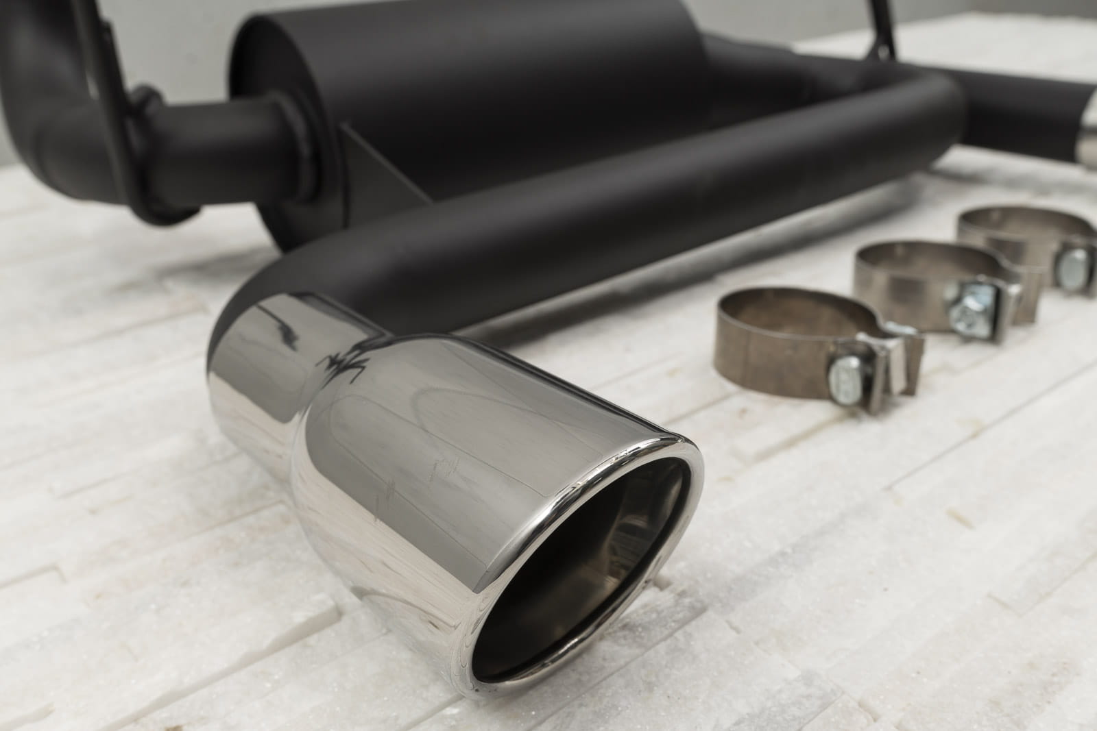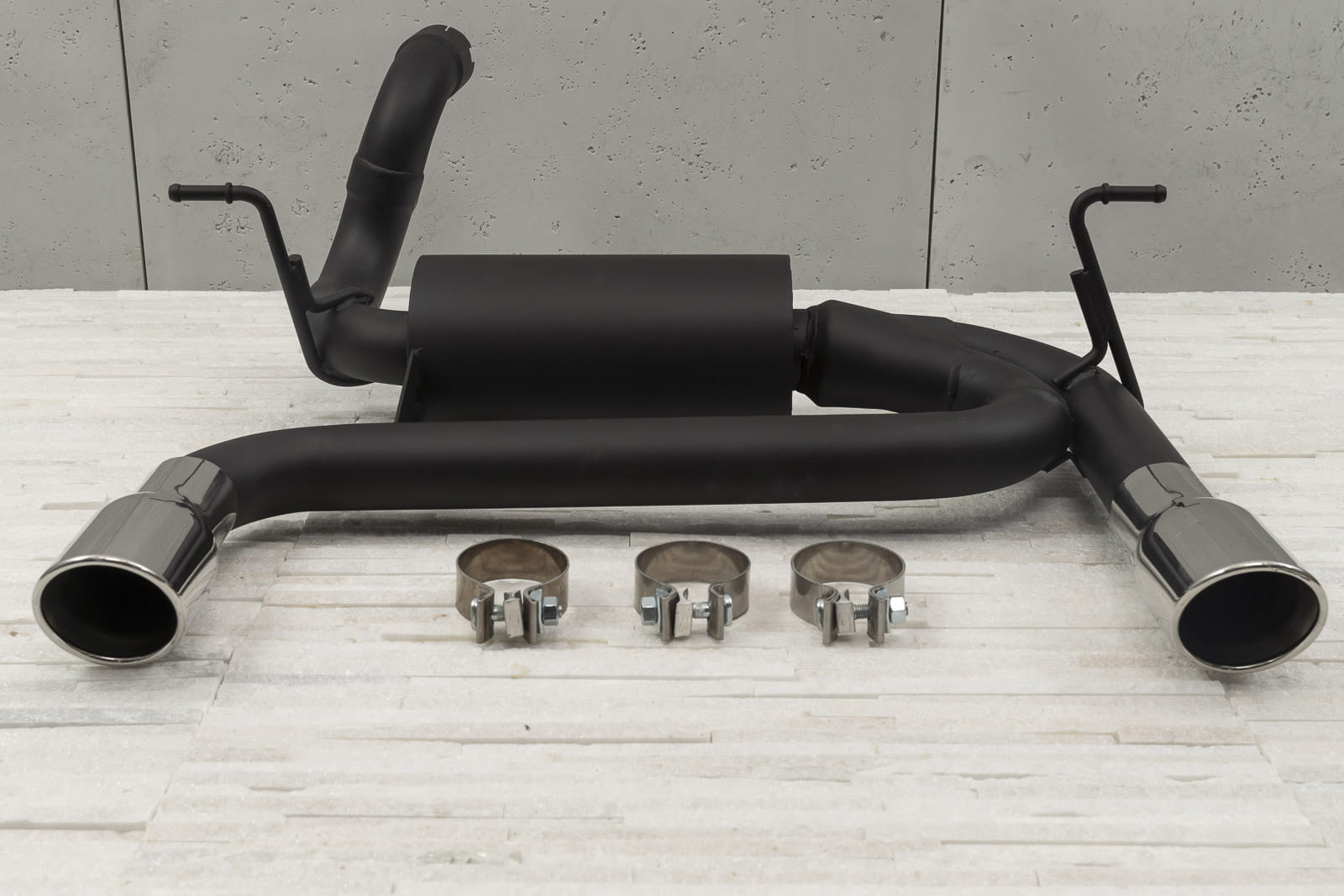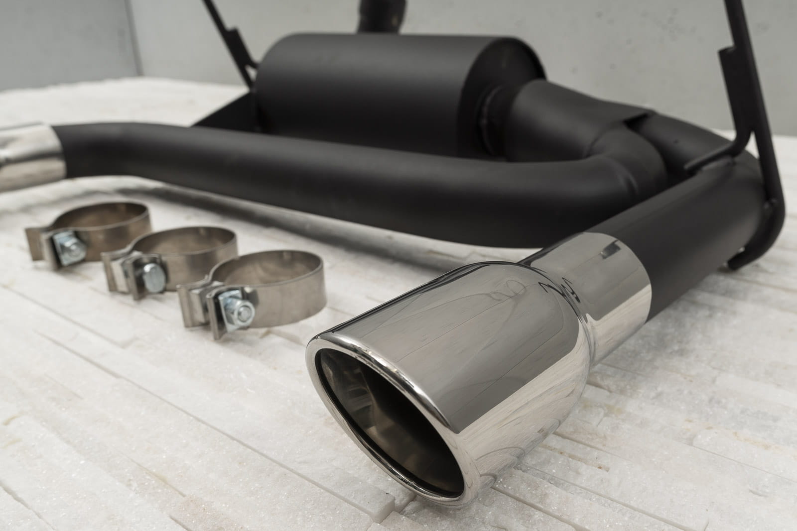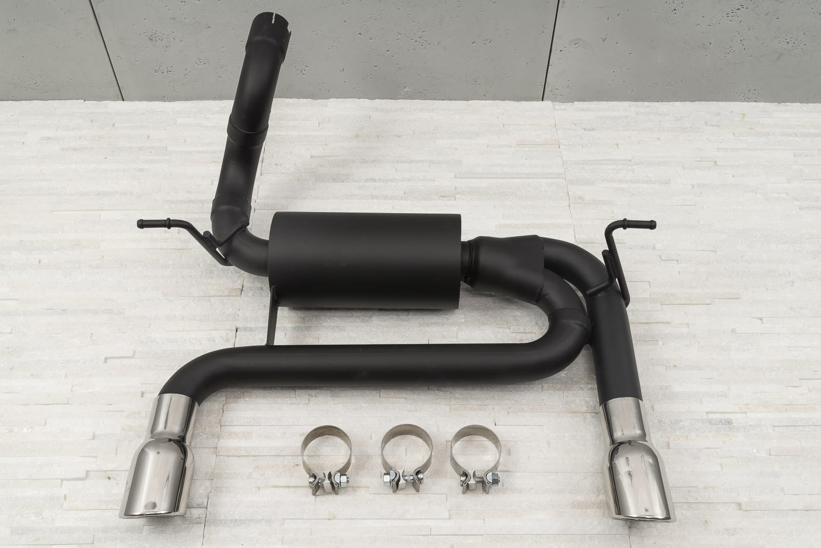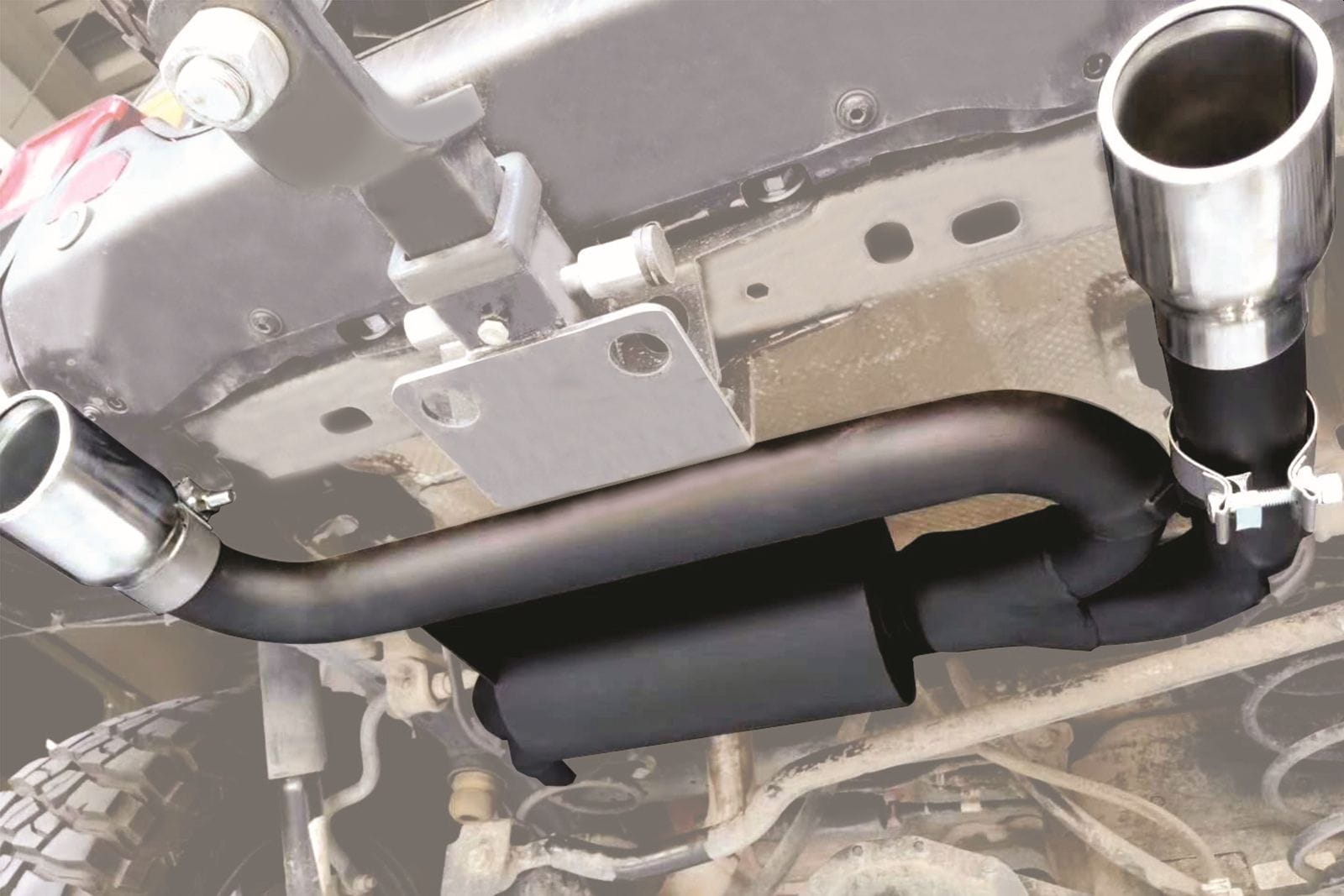 Element został wykonany ze stali nierdzewnej o grubości 2mm wykończonej w kolorze stylowej satynowej czerni, która w połączeniu z końcówkami wykonanymi z polerowanej stali nierdzewnej, całkowicie odmieni wygląd twojego Wranglera. Średnica wylotowa końcówek wydechu to 72mm.