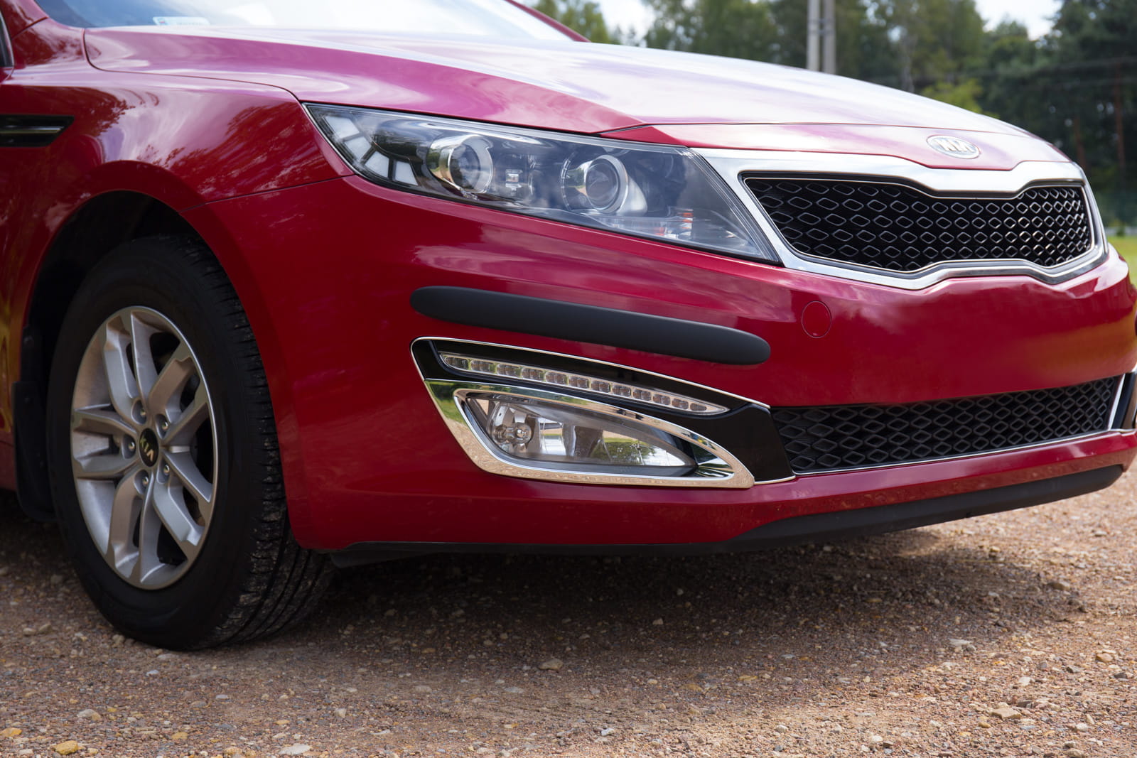 Chromowane osłony przednich lamp przeciwmgielnych, zaprojektowane dla KIA OPTIMA III (TF) 2010-2013 (wersja przed faceliftingiem).