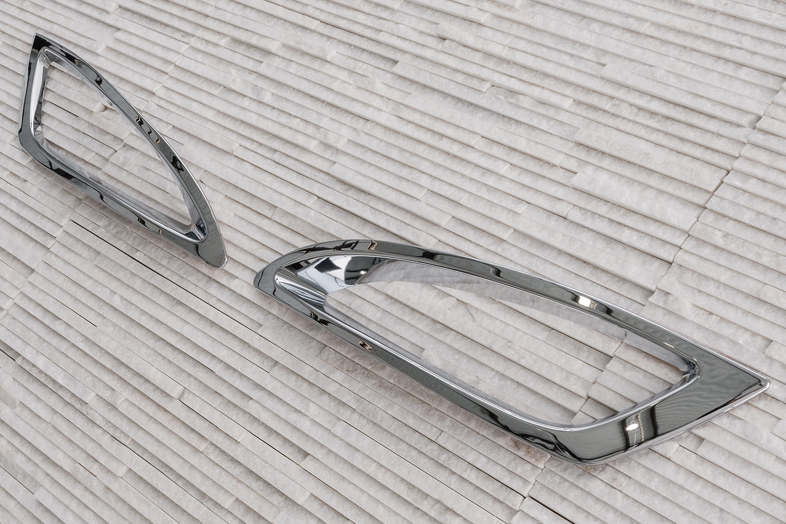 Stylizacyjne nakładki podkreślają kształt przednich lamp przeciwmgielnych. Zestawienie lustrzanego połysku chromowanej powierzchni z dynamiczną linią nakładek sprawia, że światła przeciwmgielne zyskują stylową, pełną elegancji oprawę, doskonale pasującą do charakterystycznego, sportowego stylu KIA. Dodają światłom wizualnej głębi, czyniąc z nich prawdziwą ozdobę frontu samochodu. Listwy znakomicie komponują się z innymi elementami wykończenia KIA, dzięki czemu ich zastosowanie pozwala uzyskać spójną, wyróżniającą samochód stylizację.