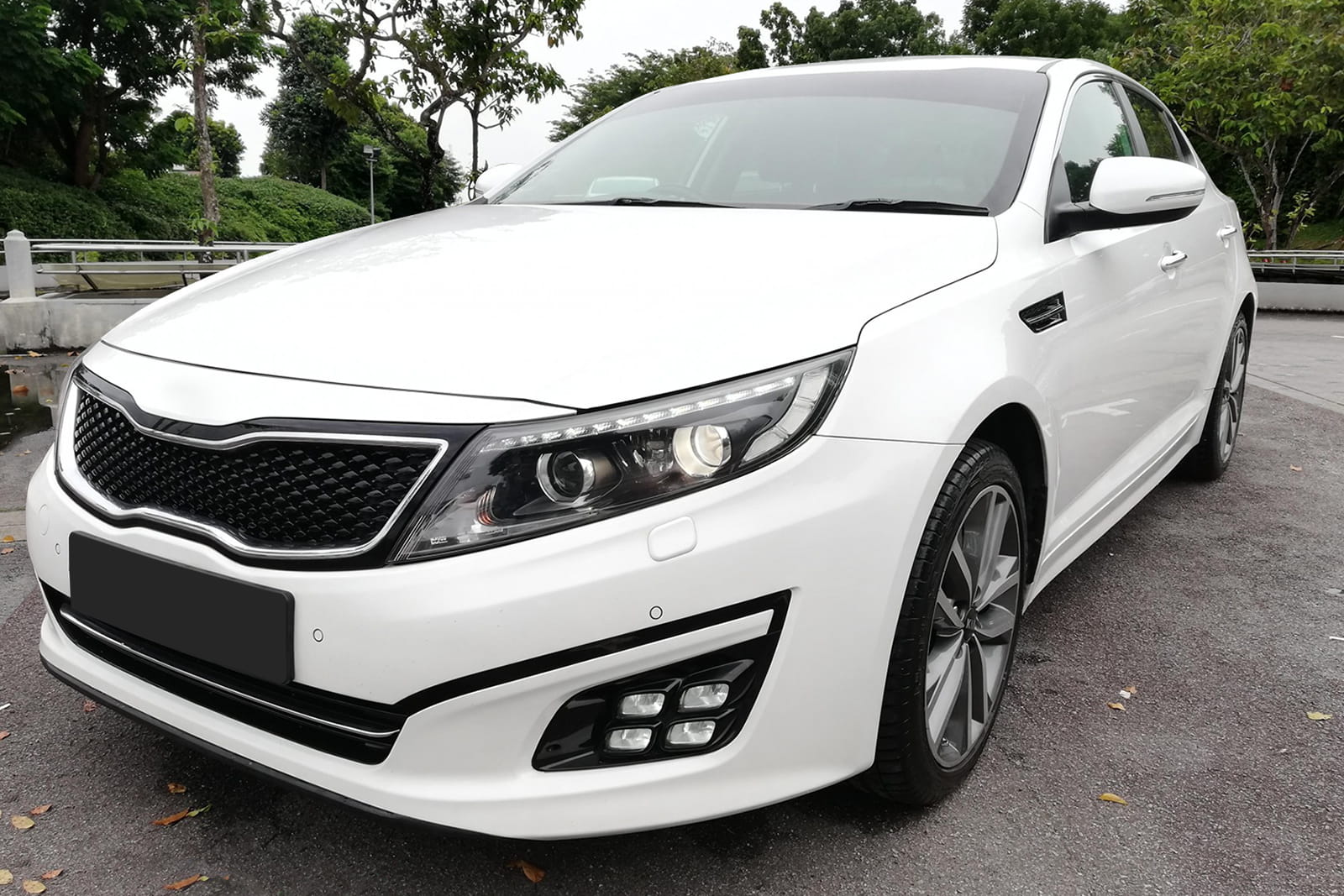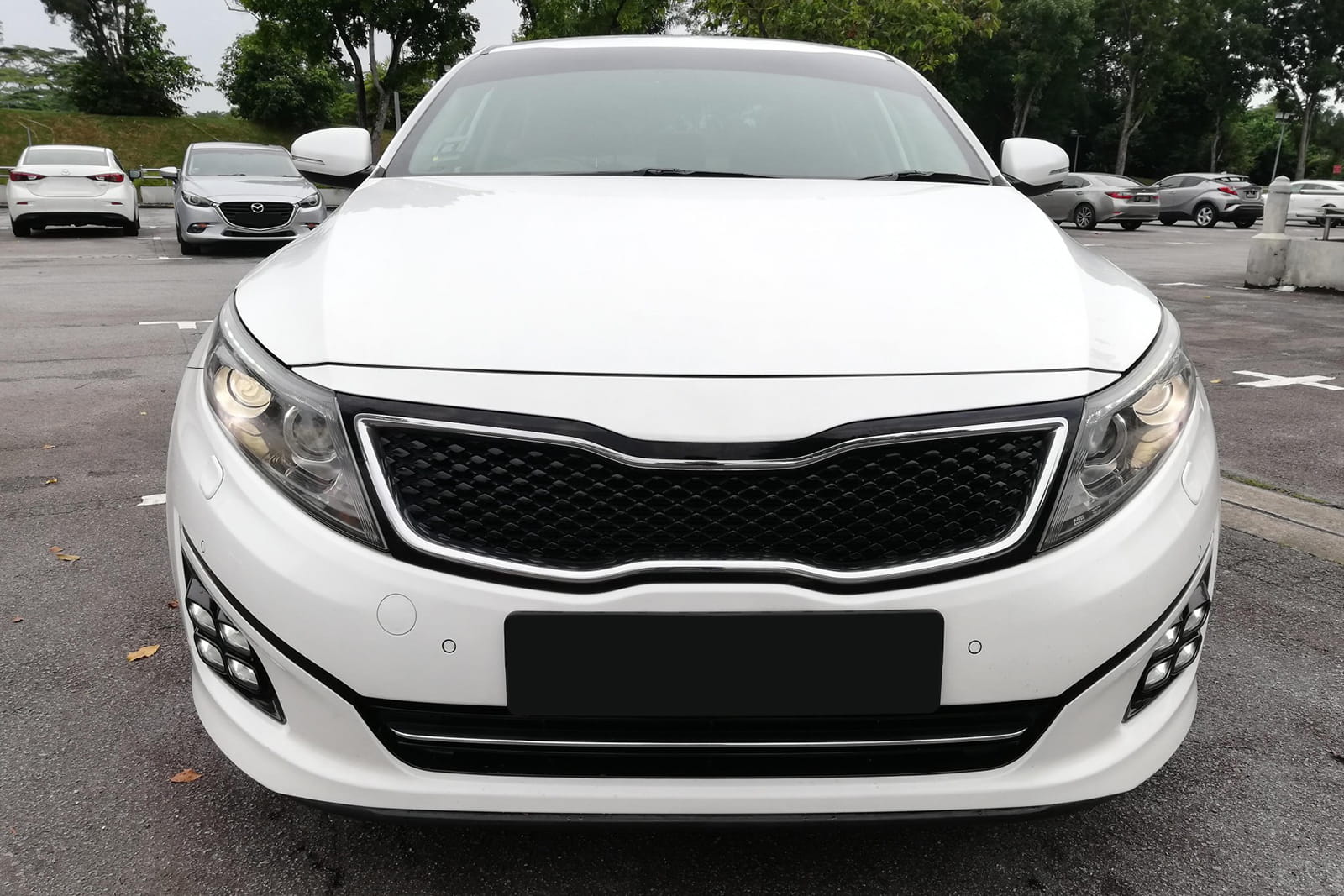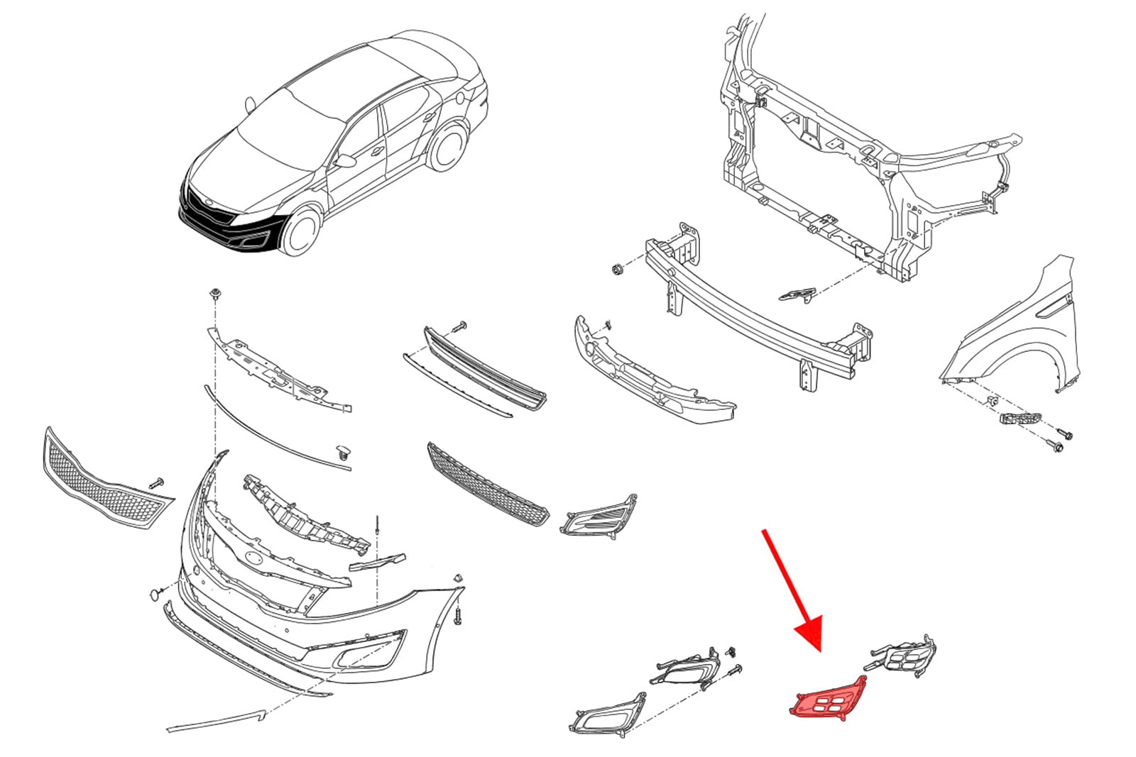Kratka zderzaka, ramka lampy przedniej lampy przeciwmgielnej, lewa, model "kostki lodu", dla KIA OPTIMA III (TF) 2013-2015 (wersja po liftingu).