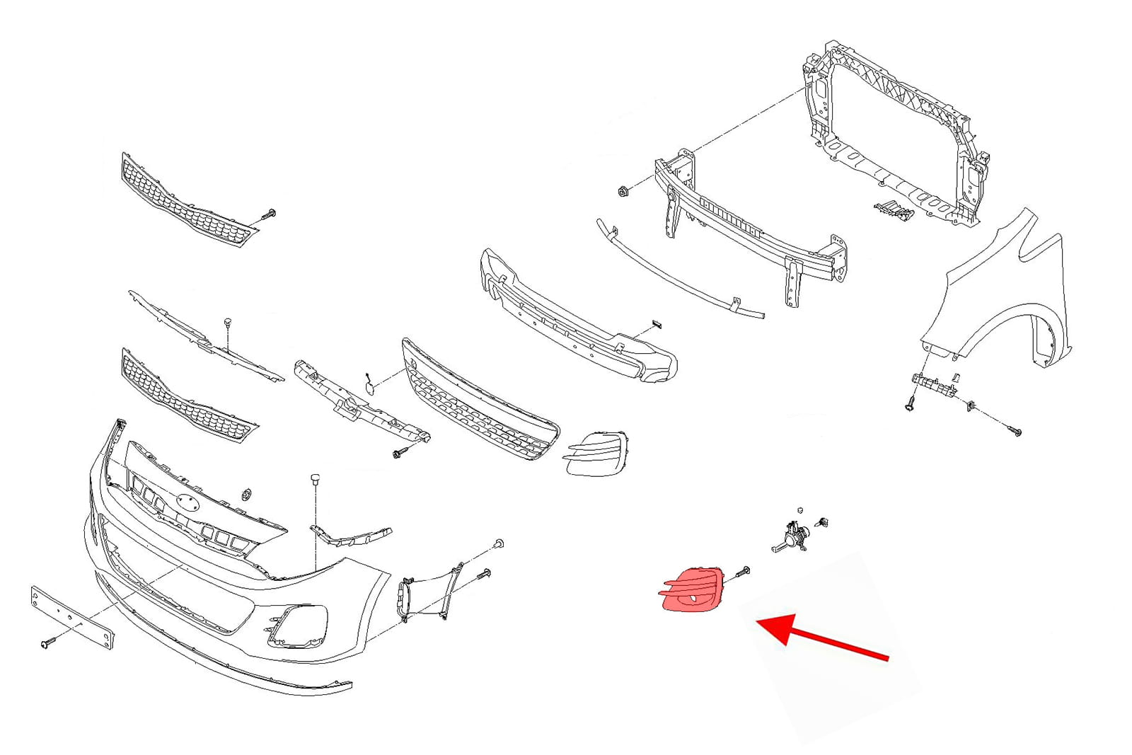Kratka zderzaka z otworem pod halogen, zaślepka halogenu lewa, dla KIA RIO III (UB) 2015-2017 (wersja HATCHBACK po faceliftingu).