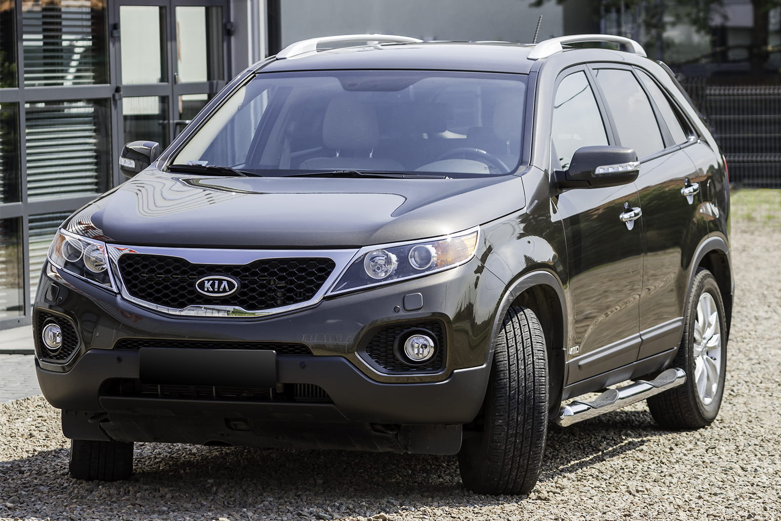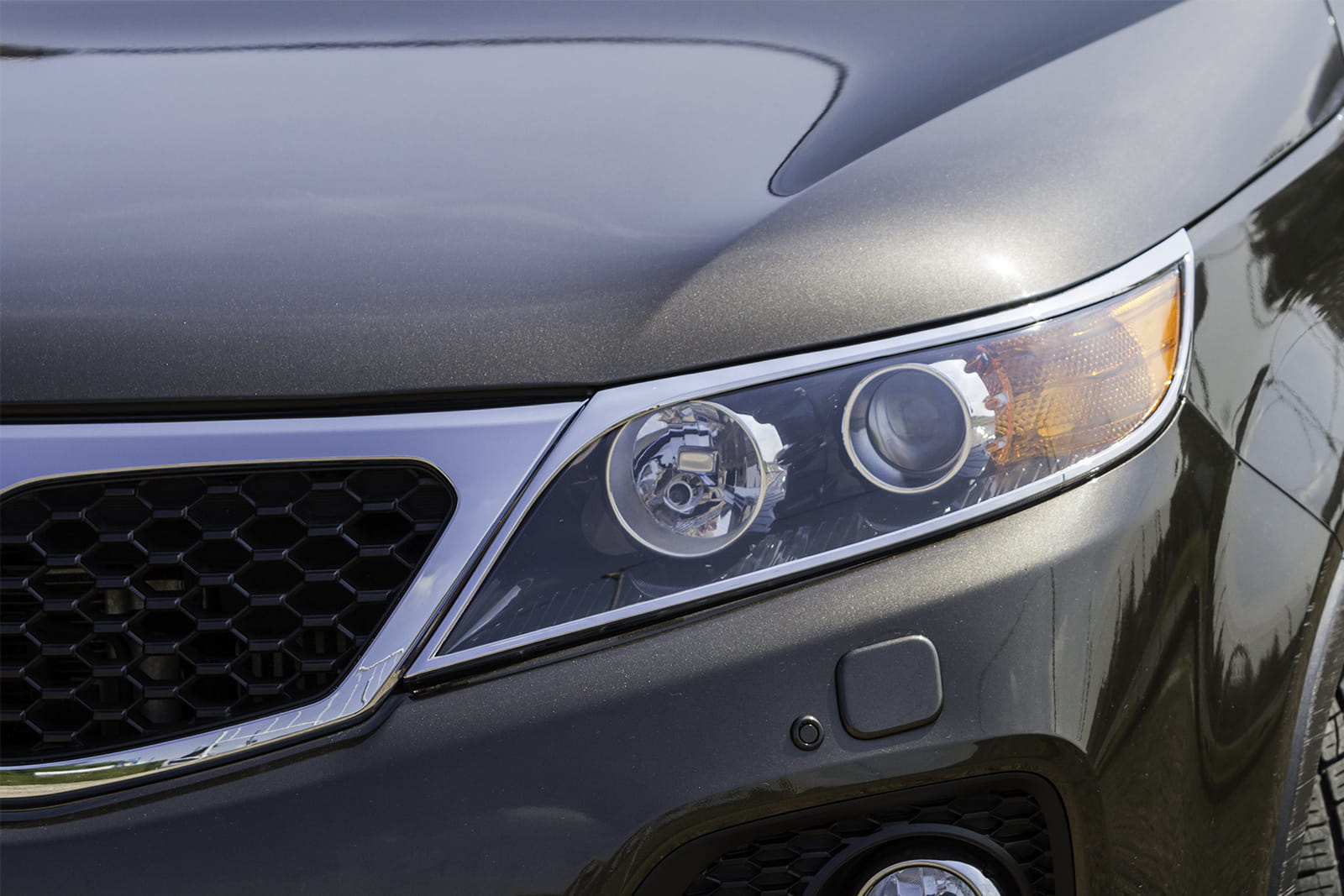 Chromowane nakładki lamp przednich, zaprojektowane dla KIA SORENTO II (XM) 2009-2012 (wersja przed faceliftingiem).