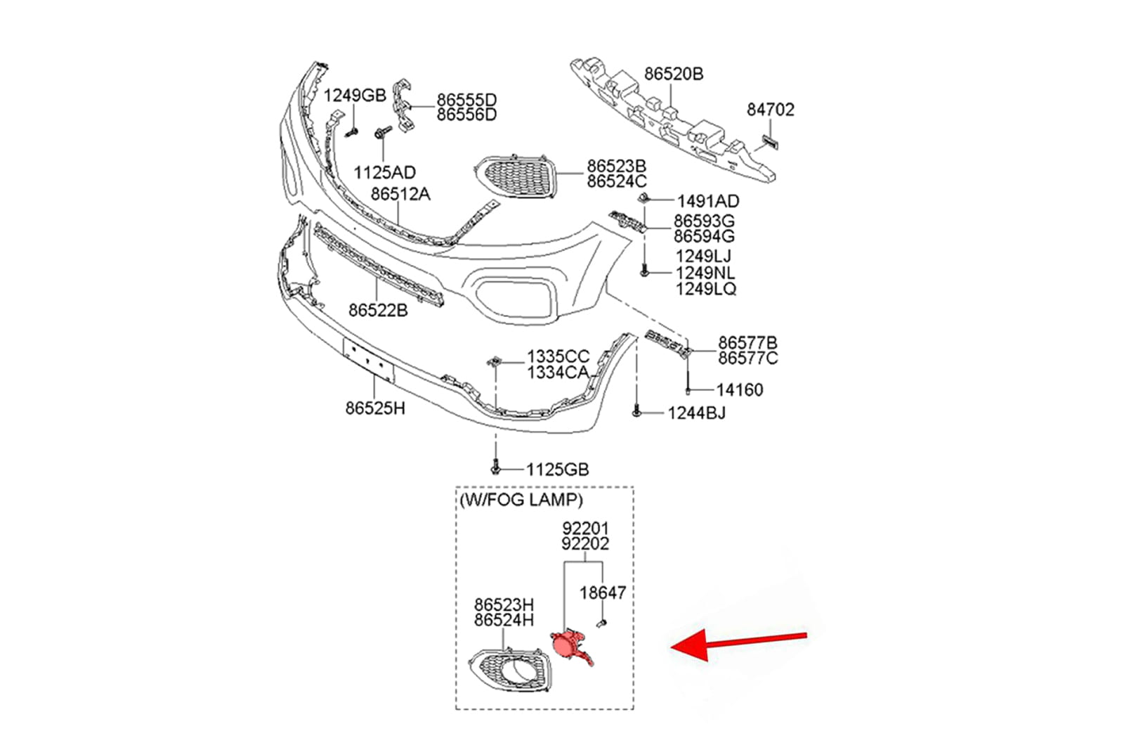 | Lampa przeciwmgielna przednia, halogen lewy dla KIA SORENTO II 2009-2013 (wersja przed liftingiem). Specyfikacja: