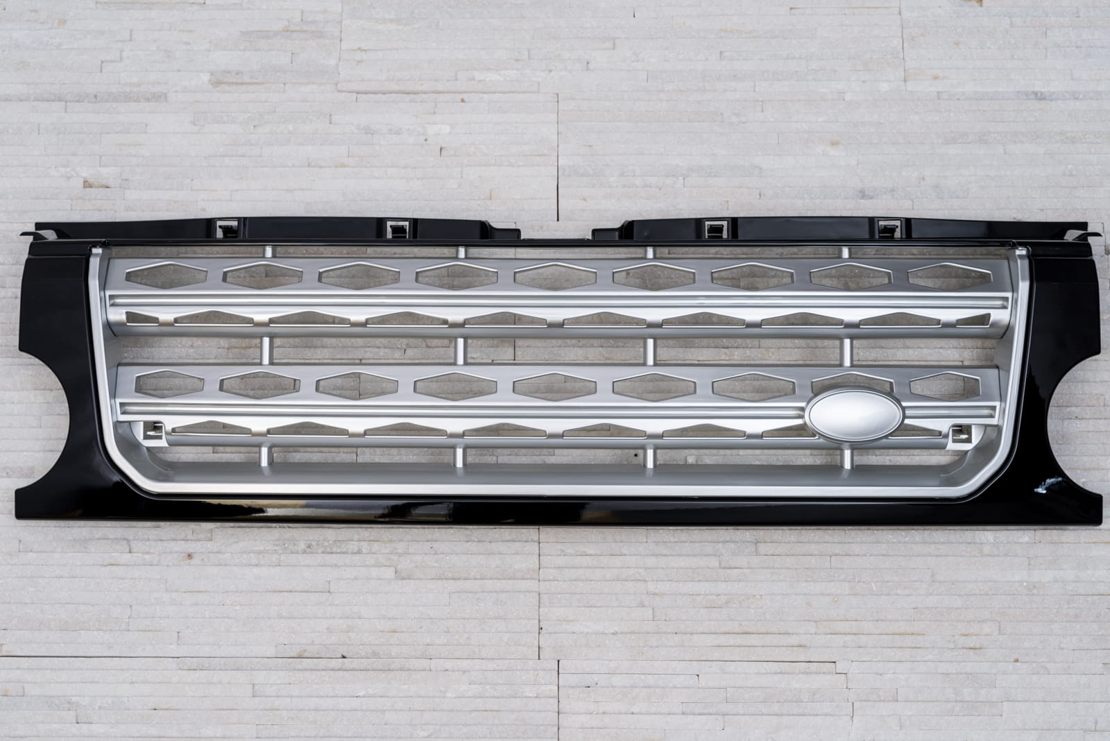 Dedykowany grill został zaprojektowany tak aby maksymalnie podkreślić dynamiczny charakter Twojego samochodu. Grill pozwala wykreować zupełnie nowy styl Land Rovera, stylizując go na wyższą wersję - LAND ROVER DISCOVERY 4, dzięki czemu auto wyróżni się na drodze w oryginalny sposób. Srebrna kratka grilla podkreśla dynamiczny styl samochodu idealnie współgrając ze zdobiącym front auta znaczkiem LAND ROVER, dopełniając jego ozdobny charakter.