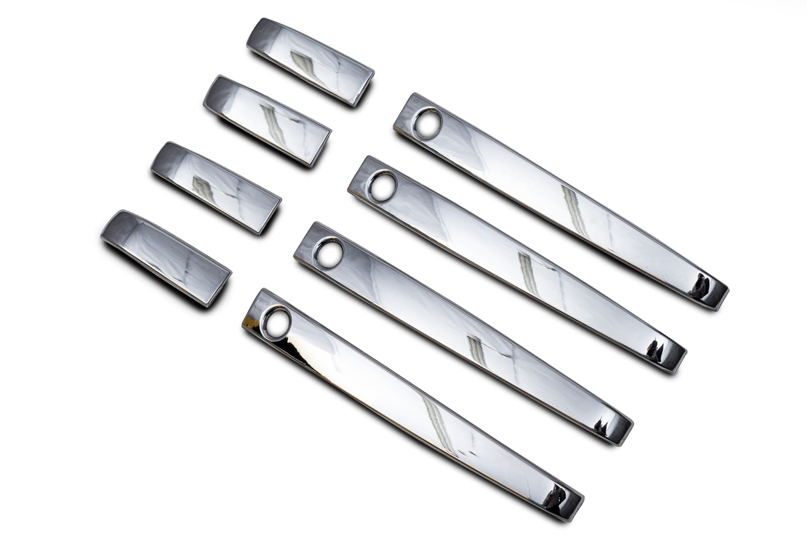 Dekoracyjne, chromowane nakładki na klamki to dodatek, który uzupełnia stylizację samochodu nutą sportowej elegancji. Idealnie dopasowane do linii samochodu, odmieniają wizerunek klamek modelu DISCOVERY SPORT, czyniąc z nich prawdziwą ozdobę samochodu. Produkt wykonany z wysokiej jakości chromowanego tworzywa ABS.