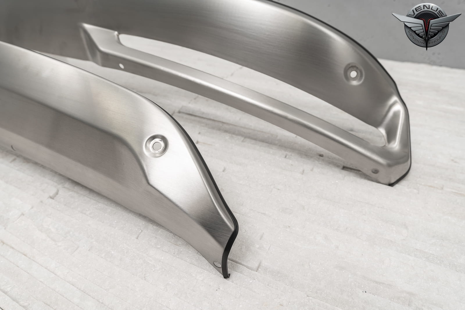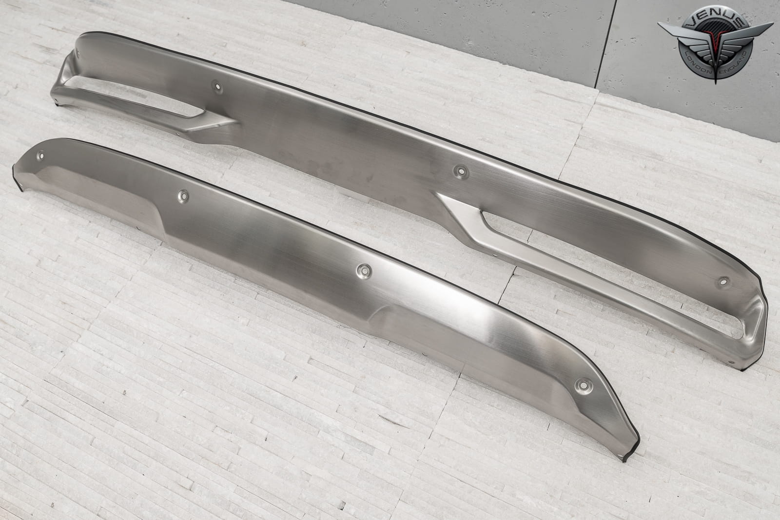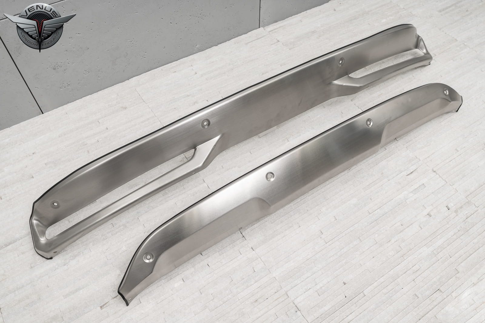 Dokładki wykonane są z wysokiej jakości stali nierdzewnej o satynowym wykończeniu. W komplecie wraz z dokładkami znajdują się elementy montażowe. Zalecamy montaż w profesjonalnym warsztacie. Produkt nowy, oryginalnie zapakowany.