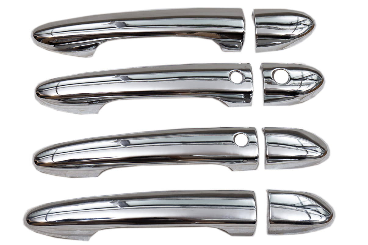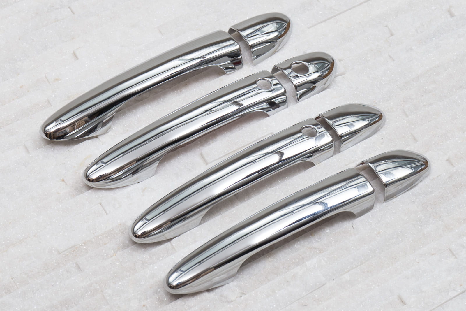 Dekoracyjne, chromowane nakładki na klamki to dodatek, który uzupełnia stylizację samochodu nutą sportowej elegancji. Idealnie dopasowane do linii samochodu, odmieniają wizerunek klamek modelu MAZDA 3, czyniąc z nich prawdziwą ozdobę samochodu. Produkt wykonany z wysokiej jakości chromowanego tworzywa ABS.