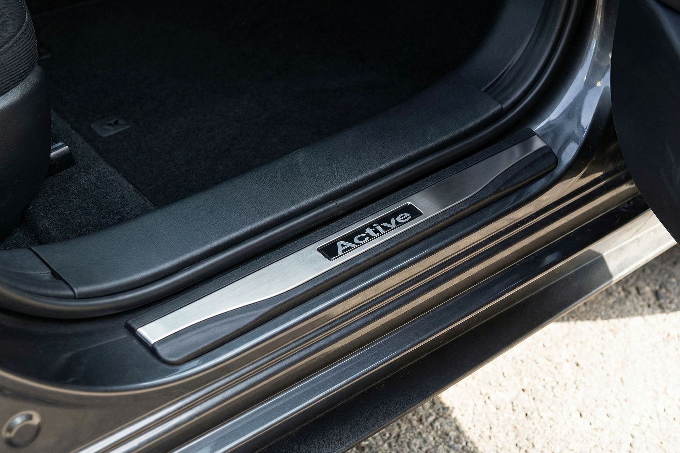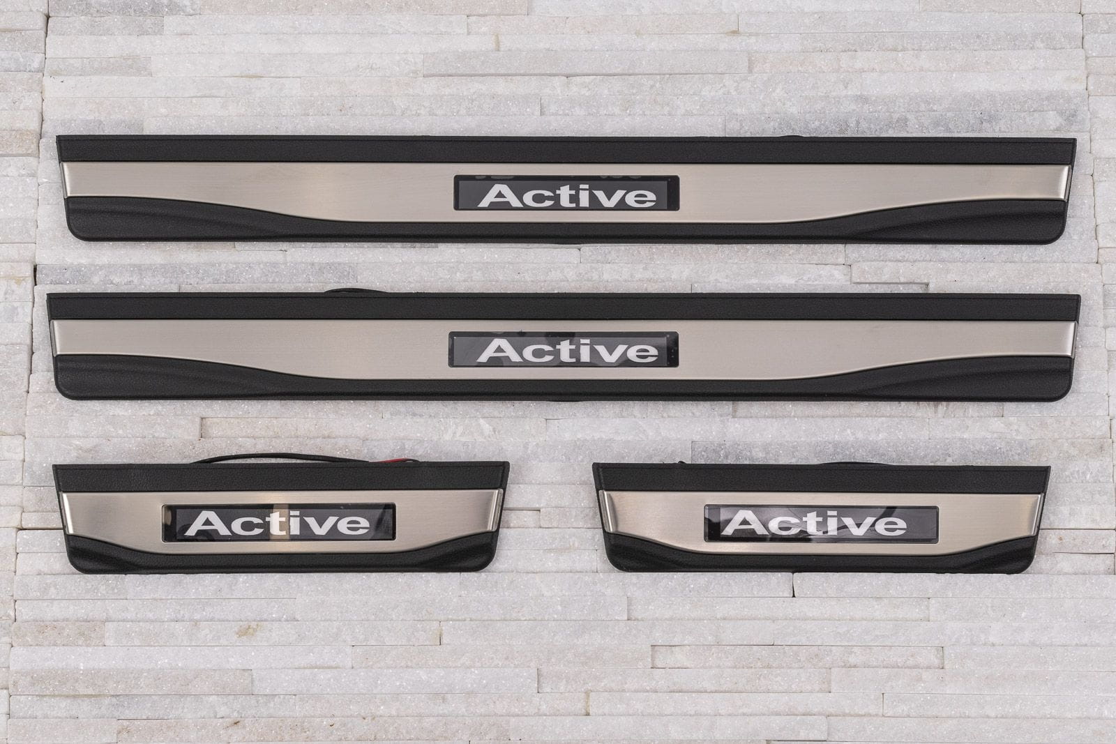Listwy progowe wewnętrzne LED zaprojektowane dla MAZDA 3 III (BM/BN) 2015-2019. Listwy montowane są na lakierowane części progów wewnętrznych. Uzupełniają linię wewnętrzną drzwi, nadają okolicy progów sportowy i elegancki wygląd. Model ten przykuwa uwagę ozdobnym, podświetlanym na niebiesko napisem ACTIVE. Dzięki wbudowanemu oświetleniu LED, element nie tylko podkreśla nowoczesny styl samochodu, ale także rozświetla okolice progu, ułatwiając tym samym wsiadanie i wysiadanie.
