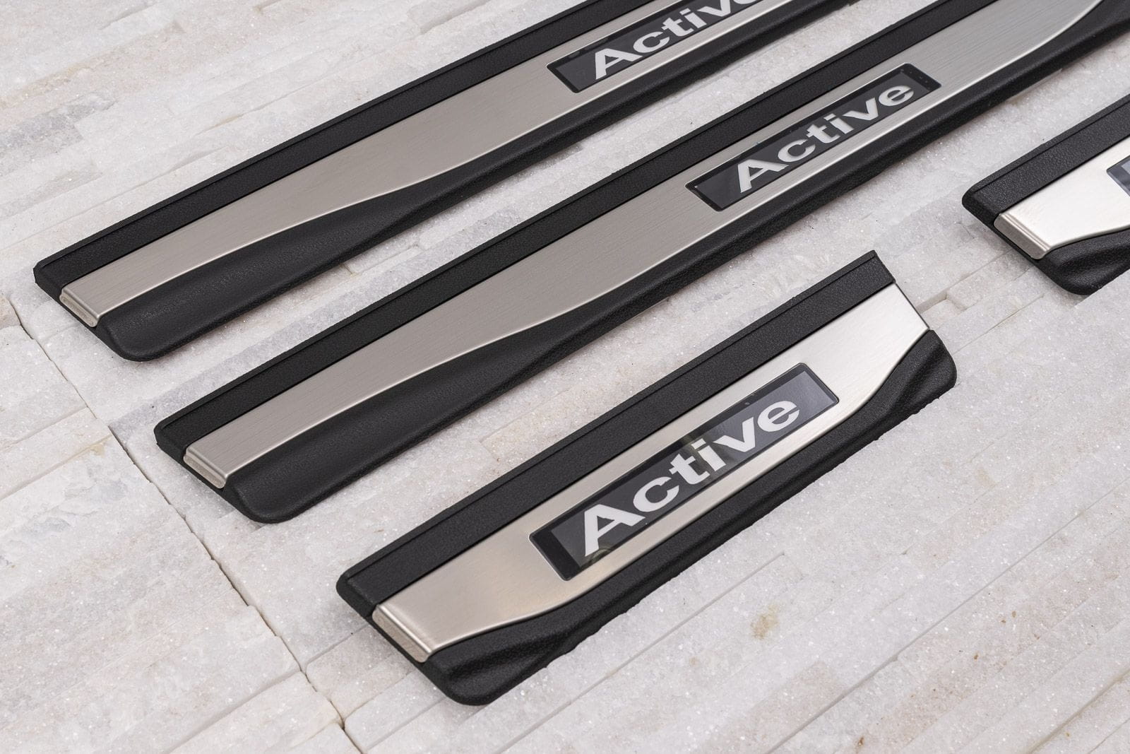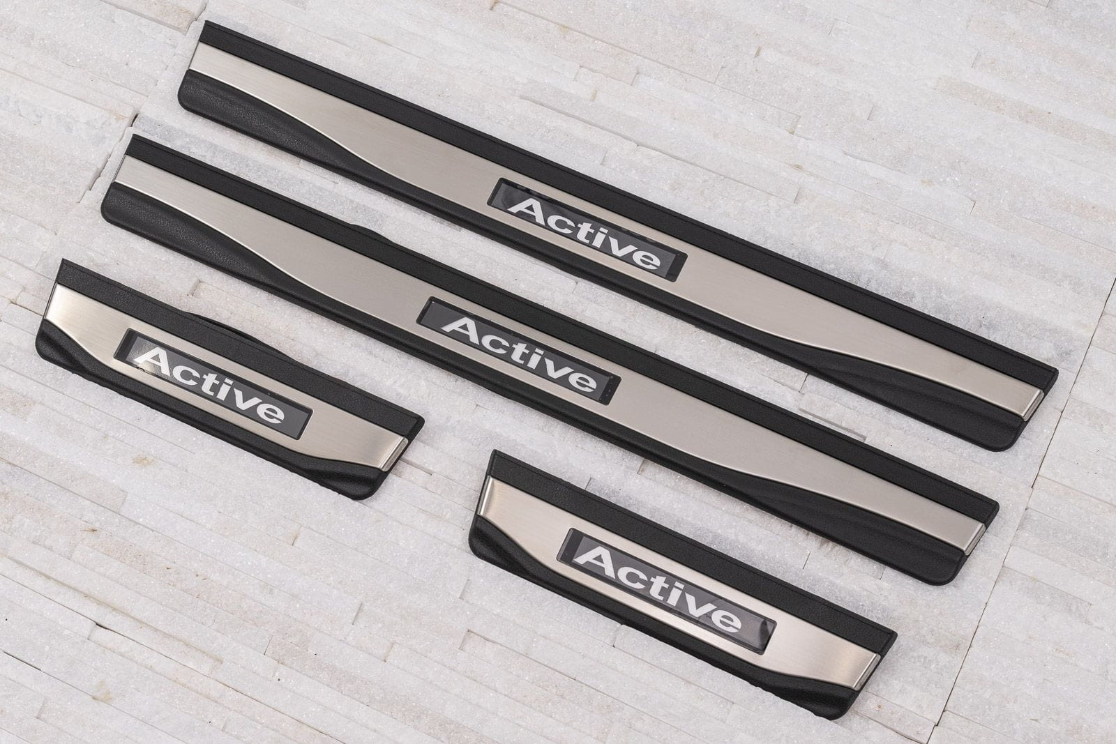 Oprócz walorów stylizacyjnych, listwy odgrywają rolę ochronną, zabezpieczając progi przed zarysowaniem i uszkodzeniami, jakie mogą powstać przy wsiadaniu oraz wysiadaniu z auta. Elementy wykonane są z trwałej stali nierdzewnej. Ich efekt stylizacyjny podkreśla połączenie dwóch efektów wykończenia stali - szczotkowanej oraz czarnego tworzywa motoryzacyjnego ABS.
