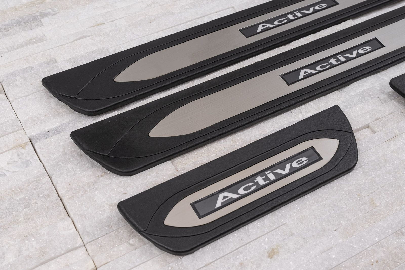 Listwy montowane są na lakierowane części progów wewnętrznych. Uzupełniają linię wewnętrzną drzwi, nadają okolicy progów sportowy i elegancki wygląd. Model ten przykuwa uwagę ozdobnym, podświetlanym napisem ACTIVE. Dzięki wbudowanemu oświetleniu LED, element nie tylko podkreśla nowoczesny styl samochodu, ale także rozświetla okolice progu, ułatwiając tym samym wsiadanie i wysiadanie. Oprócz walorów stylizacyjnych, listwy odgrywają rolę ochronną, zabezpieczając progi przed zarysowaniem i uszkodzeniami, jakie mogą powstać przy wsiadaniu oraz wysiadaniu z auta.