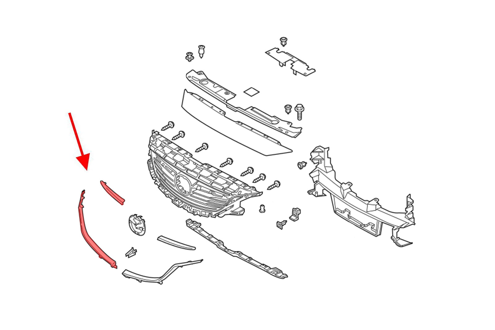 Chromowana listwa grilla prawa, dla MAZDA 6 III (GJ) 2012-2018 (wersja przed drugim faceliftingiem). Nie pasuje do wersji z lampami LED.