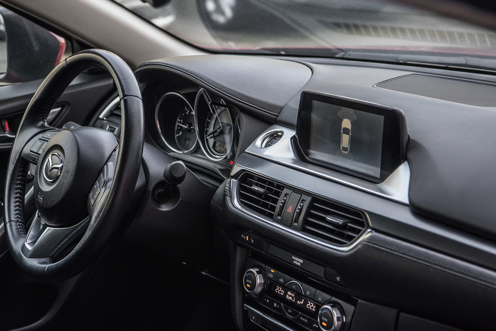 Stylizacyjna listwa konsoli nawigacji, zaprojektowana dla MAZDA 6 III (GJ) 2018+ (wersja po drugim faceliftingu). Dekoracyjna listwa sprawia, że konsola nawigacji, oprócz pełnienia swej praktycznej funkcji, staje się prawdziwą ozdobą kabiny samochodu. Idealnie dopasowany kształt oraz satynowa struktura nakładki sprawiają, że konsola nawigacji zyskuje pełną eleganckiego połysku, gustowną ramę. Element zaprojektowany został tak, by idealnie współgrać z innymi elementami wykończenia wnętrza samochodu, umożliwiając wykreowanie dopracowanej, robiącej wrażenie stylizacji.
