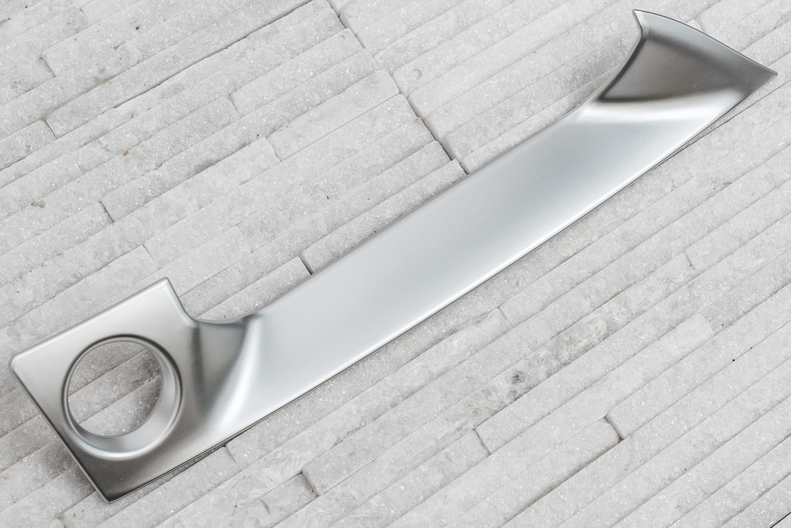 Element wykonany jest z wysokiej jakości tworzywa ABS. Nakładka montowana jest za pomocą taśmy dwustronnie klejącej Scotch 3M, zaaplikowanej wewnątrz elementu. Wystarczy odkleić taśmę, odtłuścić miejsce montażowe spirytusem, przyłożyć w odpowiednie miejsce i docisnąć. Nakładać w dodatnich temperaturach od 18 st. C, w razie potrzeby miejsca klejenia można podgrzać (np. suszarką). Zalecamy montaż profesjonalny.Produkt fabrycznie nowy, oryginalnie zapakowany.