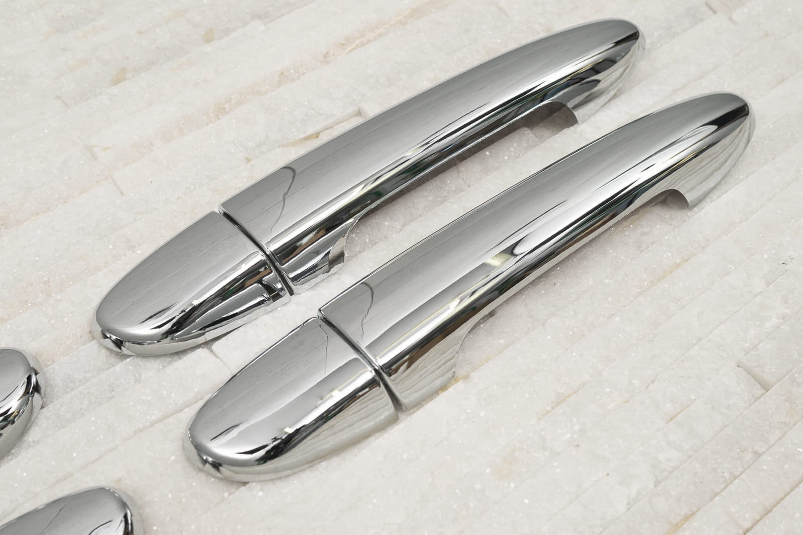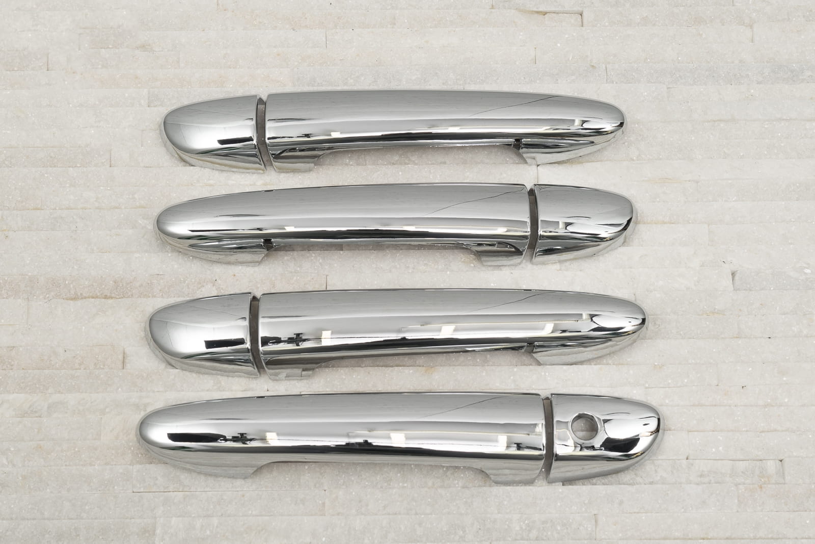 Dekoracyjne, chromowane nakładki na klamki to dodatek, który uzupełnia stylizację samochodu nutą sportowej elegancji. Idealnie dopasowane do linii samochodu, odmieniają wizerunek klamek modelu RAV4, czyniąc z nich prawdziwą ozdobę samochodu. Produkt wykonany z wysokiej jakości chromowanego tworzywa ABS.