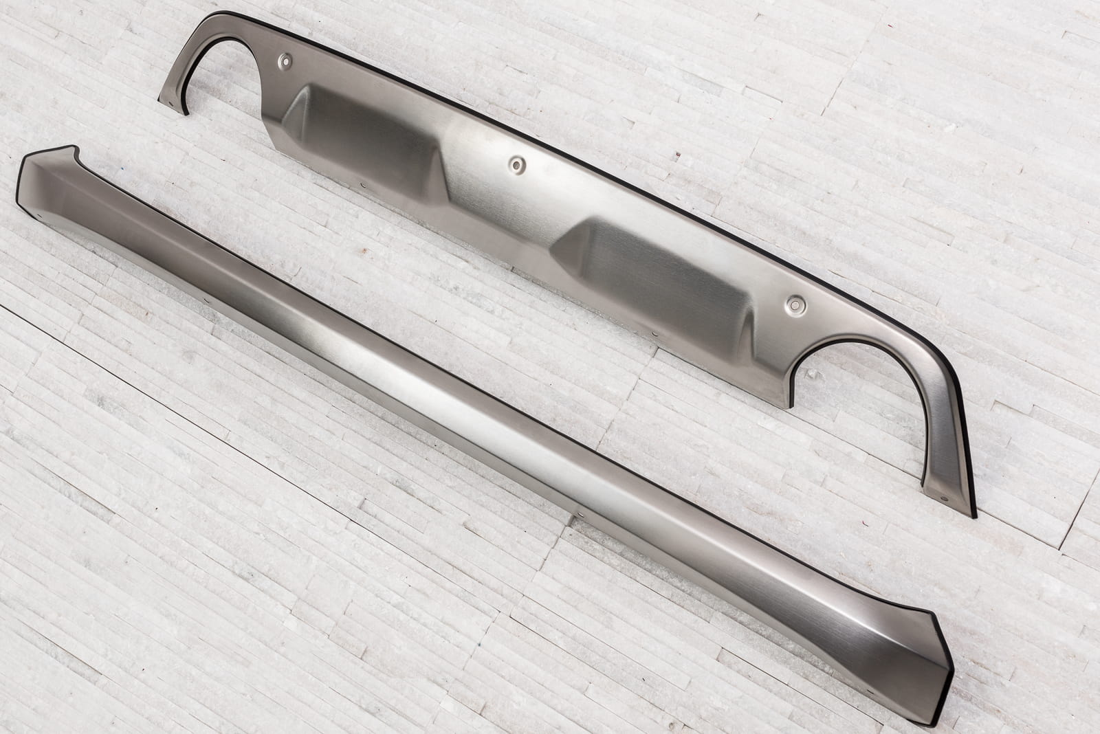 Osłony zderzaków zaprojektowane zostały tak, aby idealnie współgrać z innymi elementami wykończenia, dopełniając dynamiczny charakter Twojego auta. Oprócz walorów wizualnych, elementy służą także ochronie powłoki lakierniczej samochodu, zapobiegając jej obiciu przez kamienie itp.