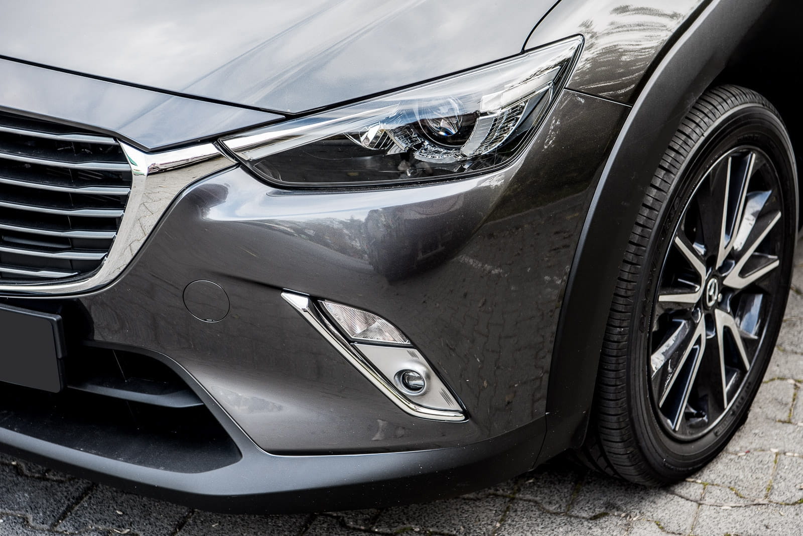Chromowane listwy przednich halogenów, zaprojektowane dla MAZDA CX-3 (DK) 2015-2021.