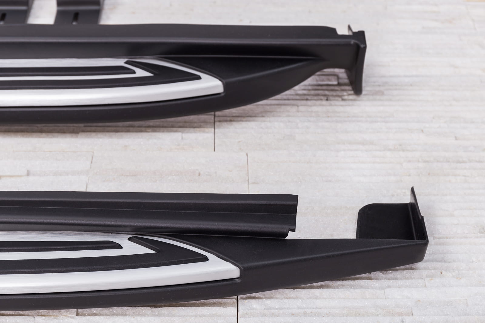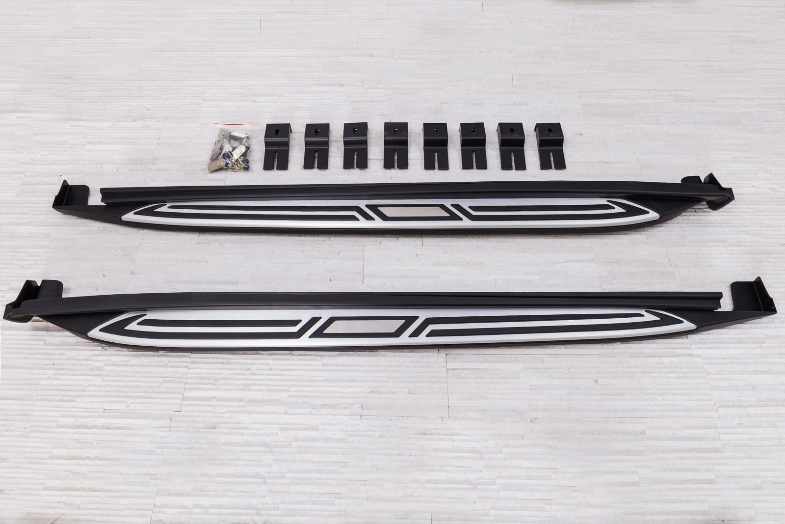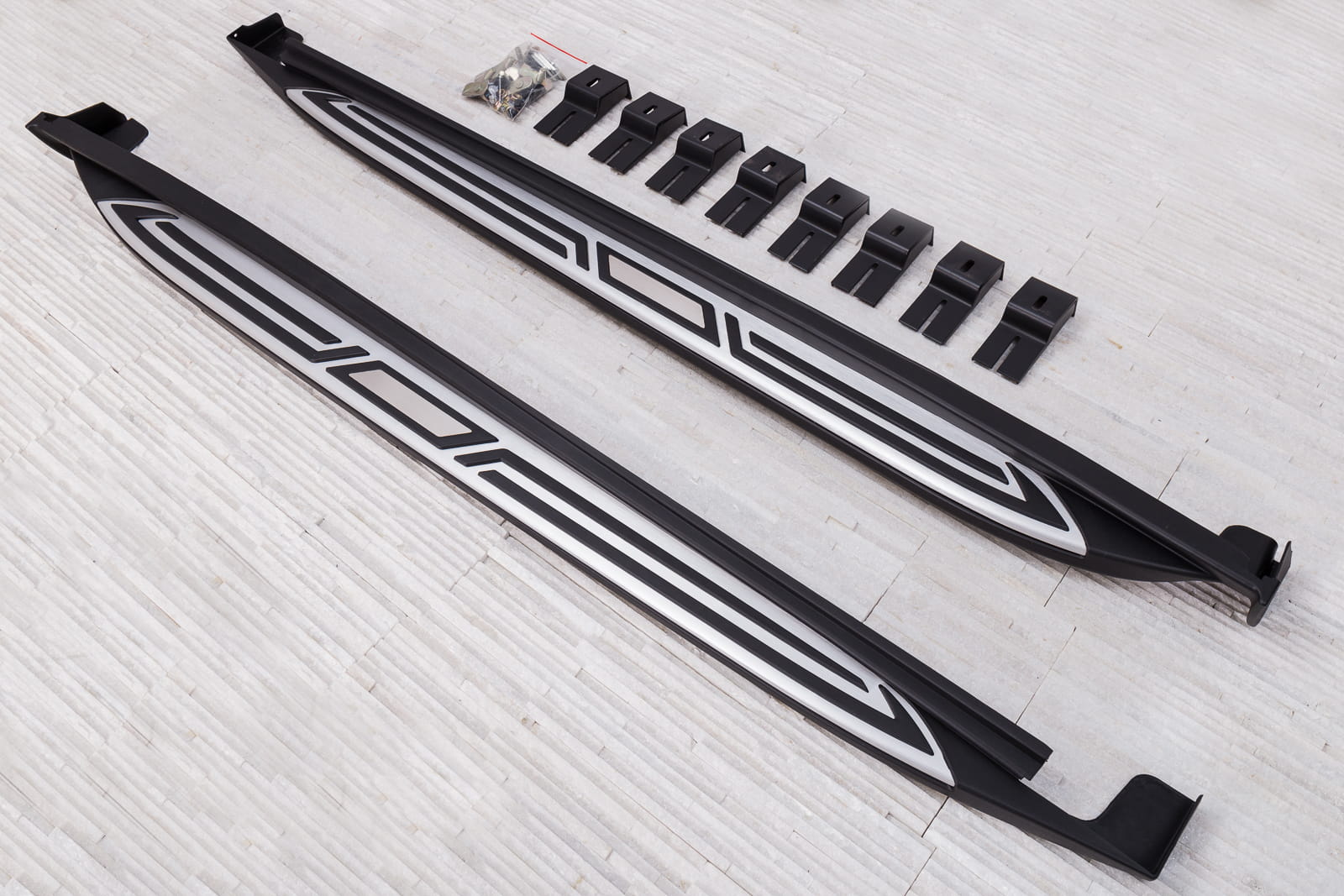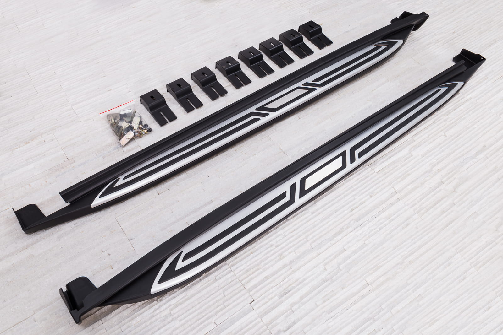 W zestawie komplet stopni bocznych (prawy i lewy), elementy montażowe oraz instrukcja. Progi montowane są na fabrycznych punktach montażowych. Montaż stopni nie wymaga wiercenia dodatkowych otworów! Zalecamy profesjonalny montaż w warsztacie (z doświadczenia wiemy że najlepiej skorzystać z usług zakładu lakierniczego lub blacharskiego ponieważ to te zakłady zajmują się najczęściej montażem listew, dokładek oraz stopni, więc montaż dla tych zakładów jest czynnością intuicyjną).