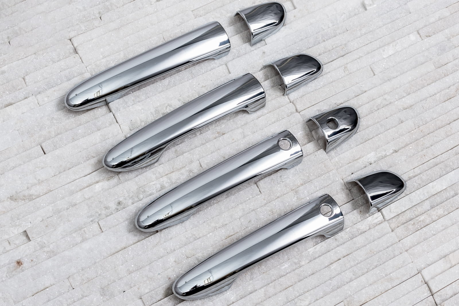 Dekoracyjne, chromowane nakładki na klamki to dodatek, który uzupełnia stylizację samochodu nutą sportowej elegancji. Idealnie dopasowane do linii samochodu, odmieniają wizerunek klamek modelu CX-5, czyniąc z nich prawdziwą ozdobę samochodu. Produkt wykonany z wysokiej jakości chromowanego tworzywa ABS.