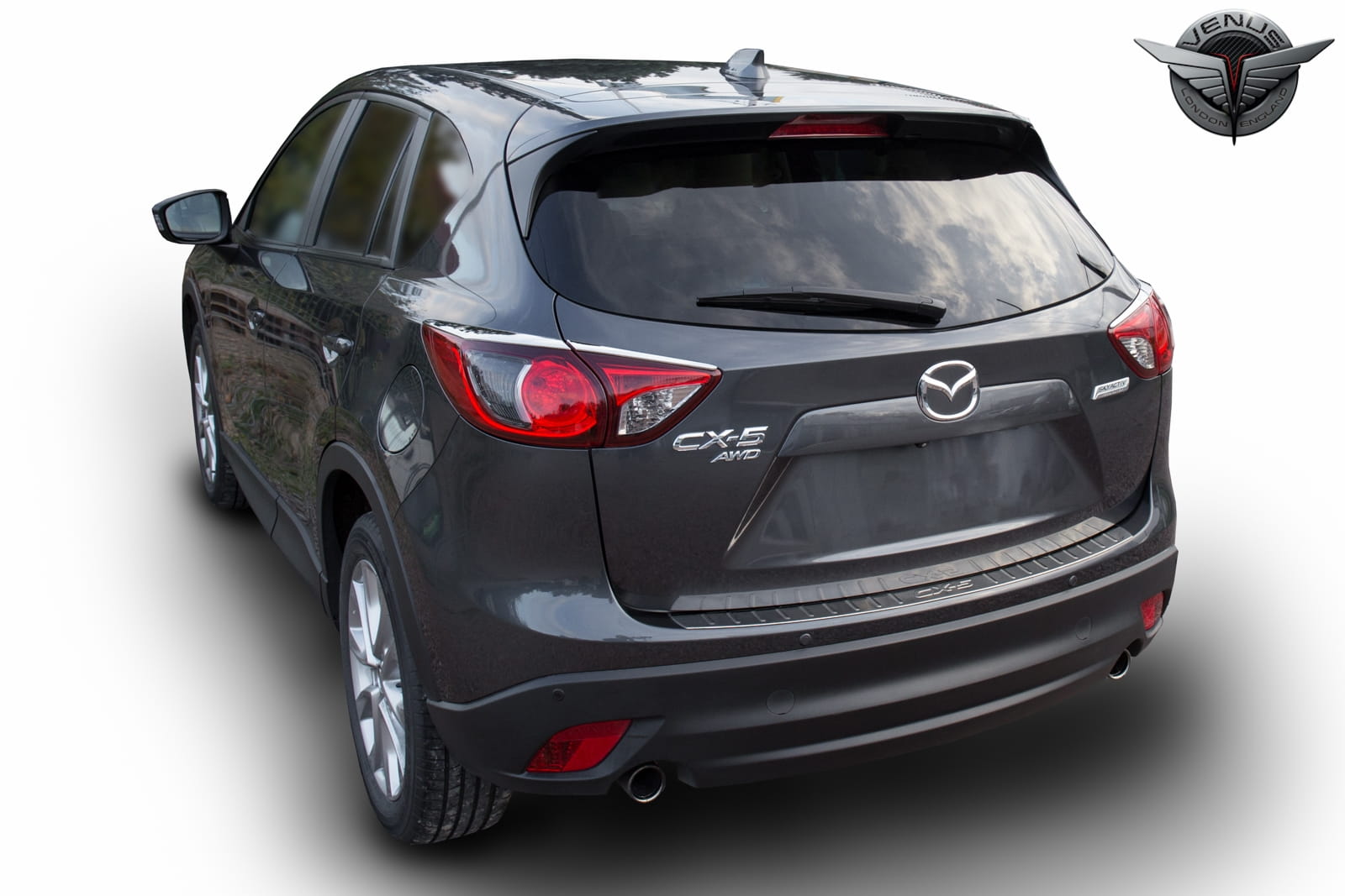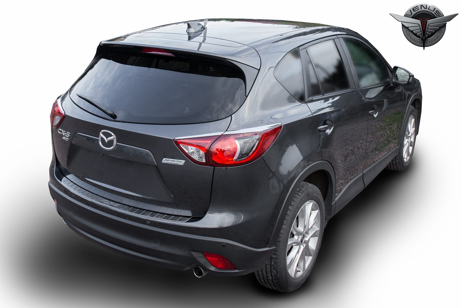 Stylizacyjne osłony podkreślają linię lamp tylnych Mazdy. Dzięki wysokiemu połyskowi chromowanej powierzchni nakładek, tylne światła samochodu zyskują przyciągającą wzrok oprawę, uzupełniającą stylizację samochodu nutą sportowej elegancji. Produkt wykonany z wysokiej jakości chromowanego tworzywa ABS.