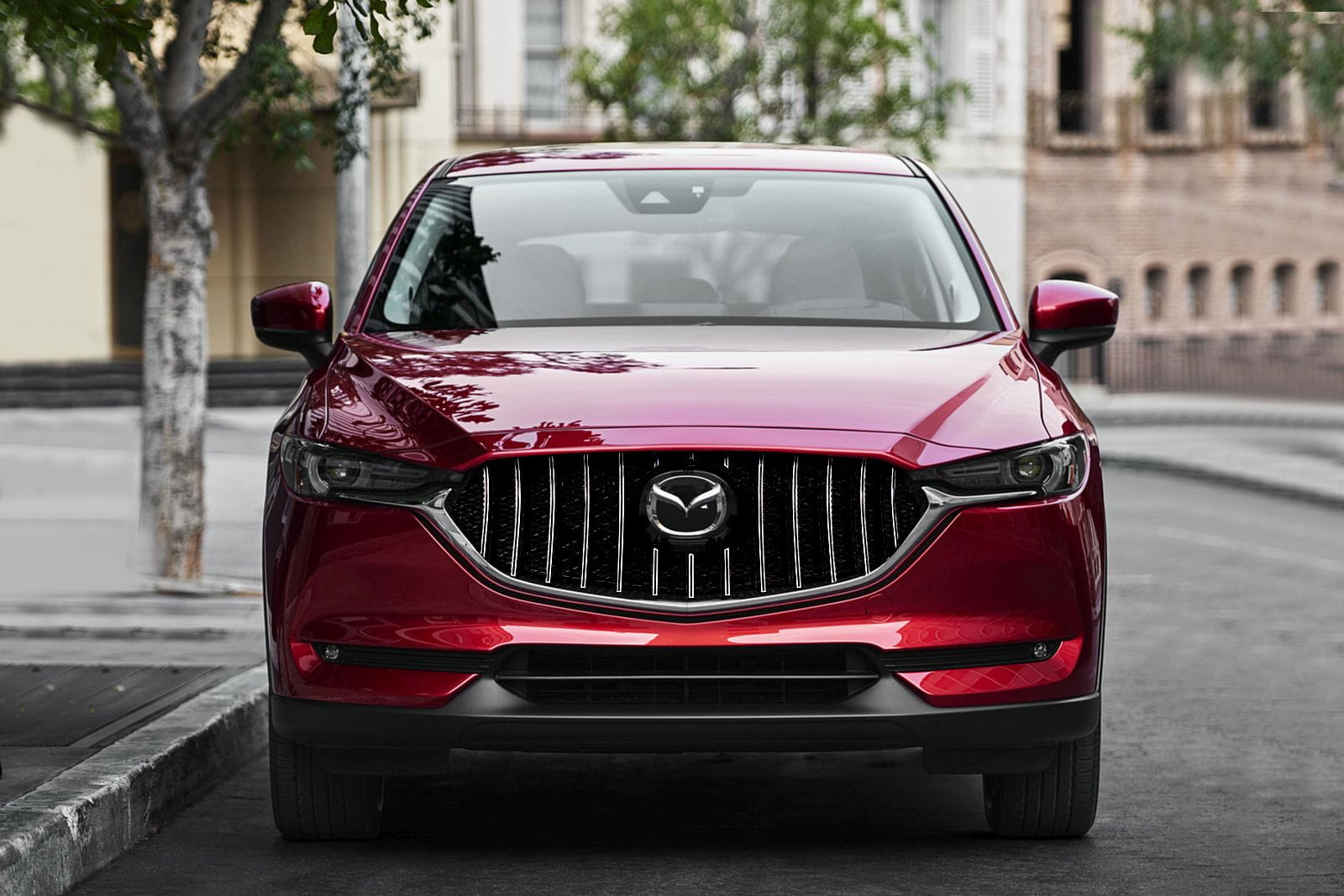 Dedykowany grill zaprojektowany został w stylu charakterystycznym dla samochodów z segmentu GT. Kratka grilla ozdobiona została szerokimi, chromowanymi poprzeczkami, które nieodzownie przywodzą na myśl budzące respekt, pełne mocy samochody z najwyższej półki. Element zachwyca sportowym charakterem, a połysk chromowanych elementów dodaje mu elegancji - dzięki czemu doskonale współgra z imponującym designem Mazdy CX-5.