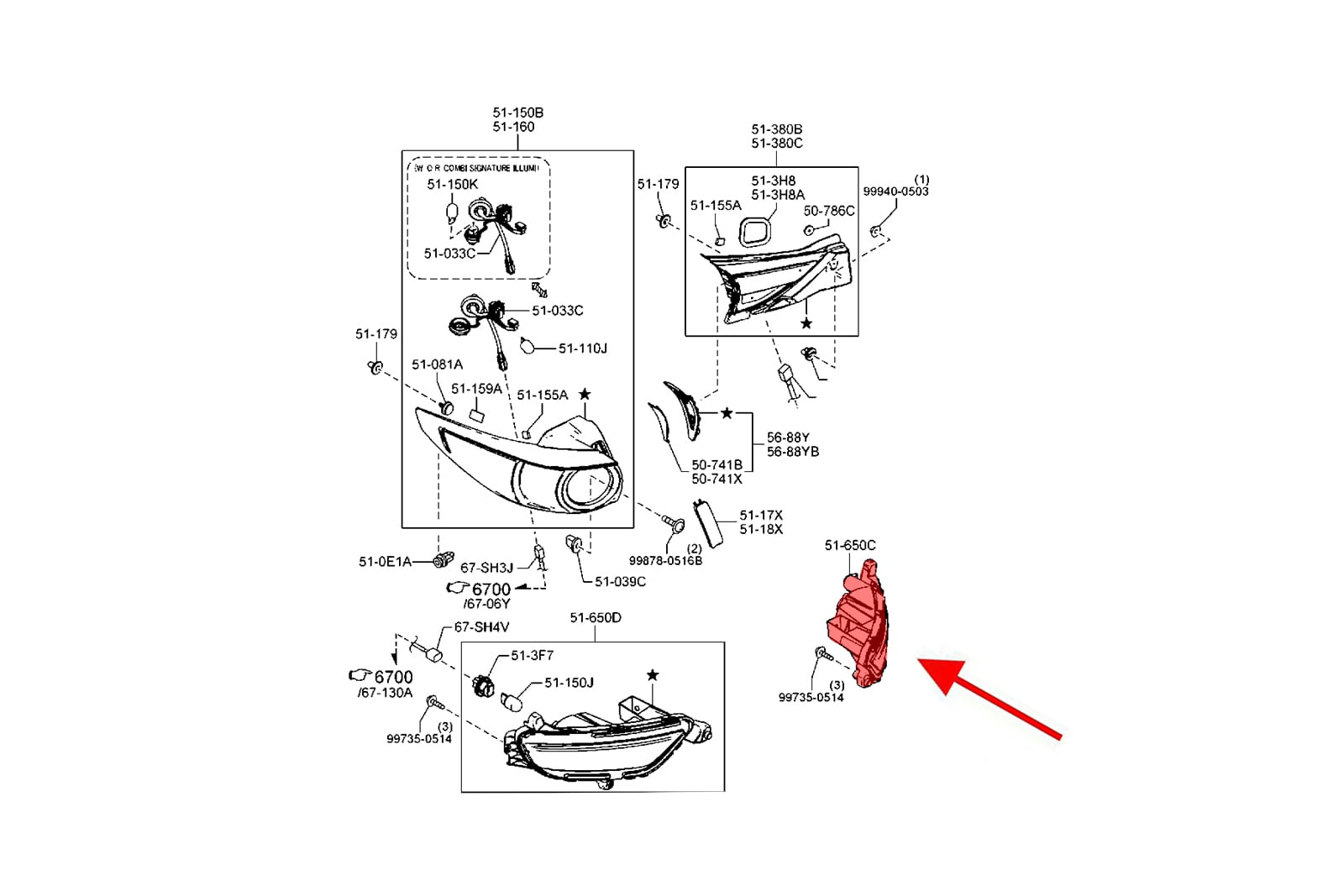 MAZDA CX-5 II 2017-2025 LAMPA PRZECIWMGIELNA TYLNA PRAWA KB8M51650C