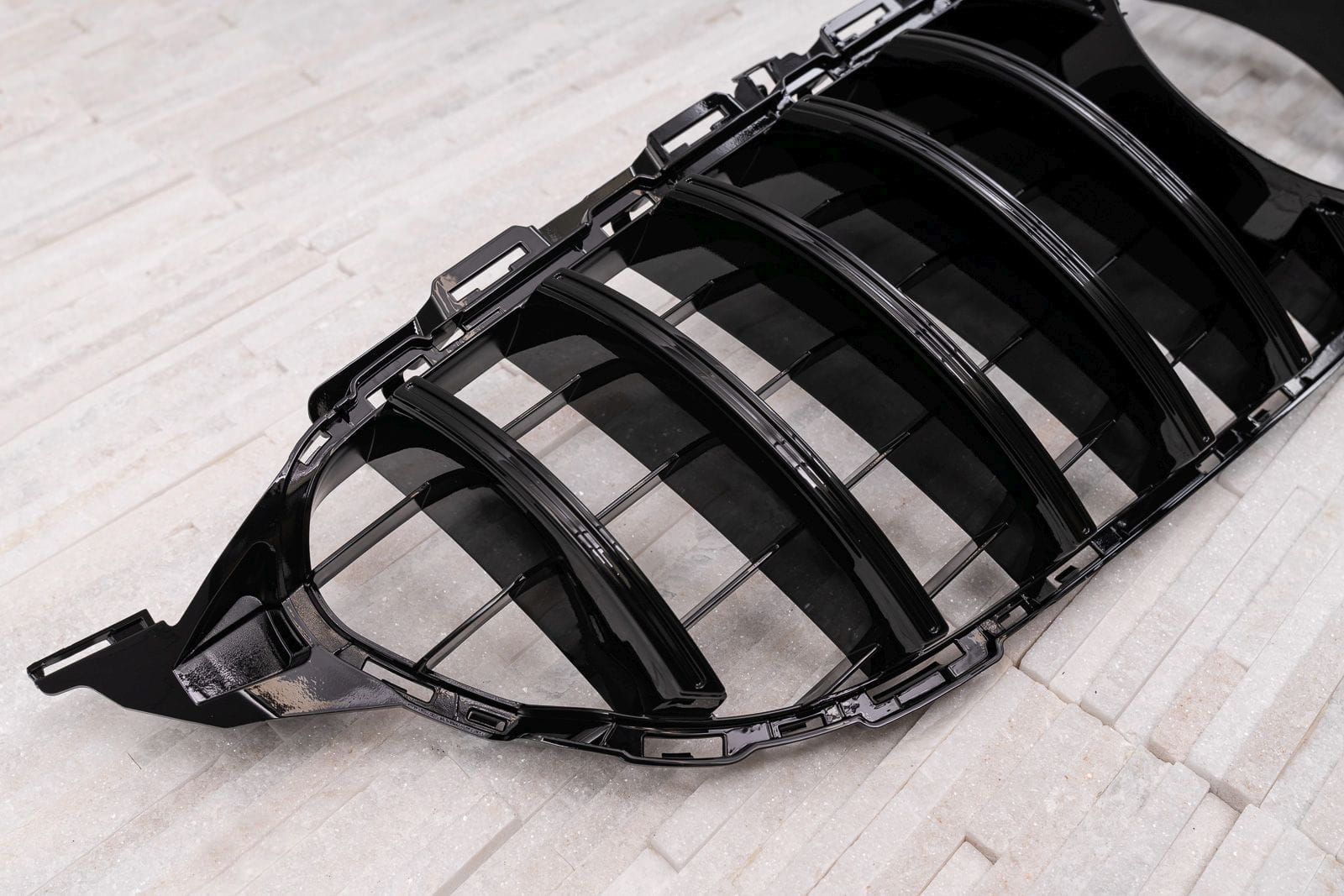Dedykowany grill zaprojektowany został w stylu charakterystycznym dla samochodów z segmentu GT. Kratka grilla ozdobiona została szerokimi czarnymi poprzeczkami, które nieodzownie przywodzą na myśl budzące respekt, pełne mocy samochody z najwyższej półki. Element zachwyca sportowym charakterem, doskonale współgrając z imponującym designem Mercedesa.
