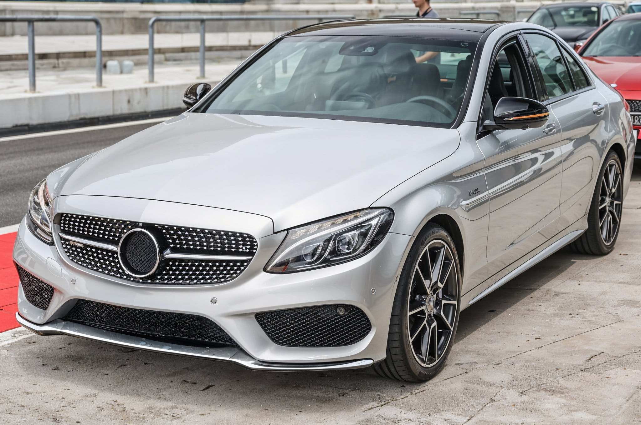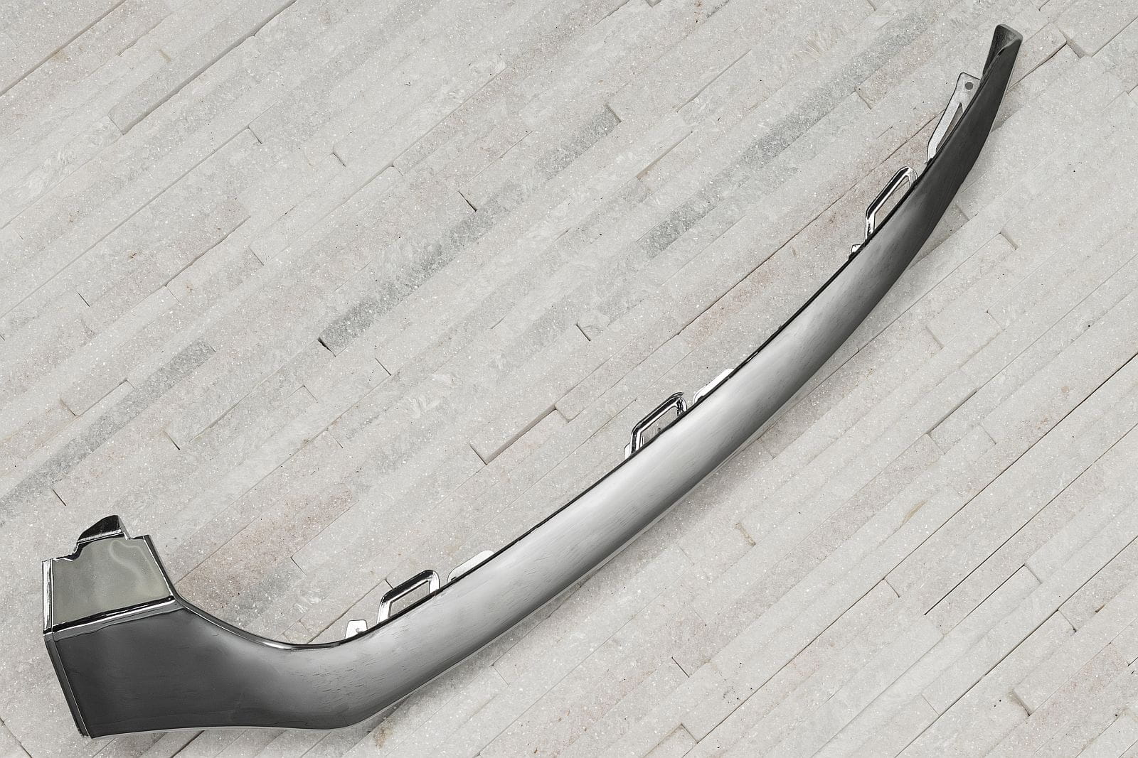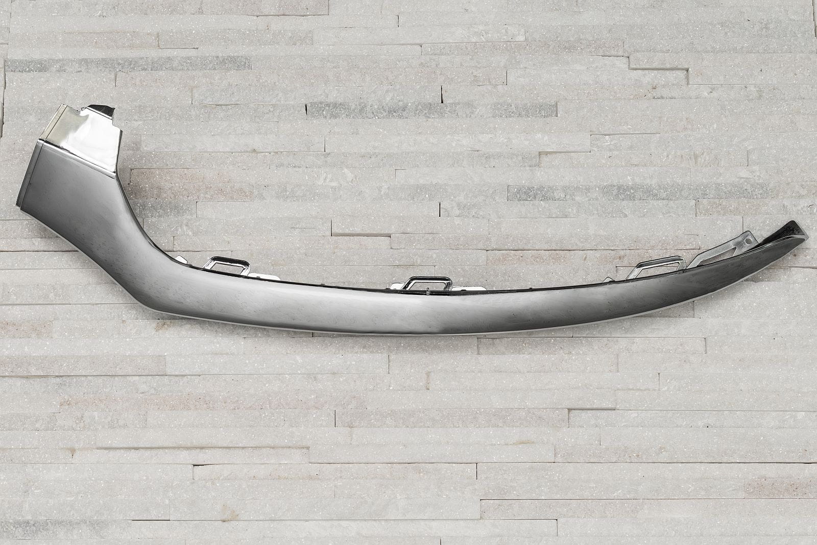 Chromowana listwa przedniego zderzaka, lewa, dla MERCEDES KLASY C (W205) 2014-2018 (przed faceliftingiem). Pasuje do wersji z pakietem stylizacyjnym AMG (AMG Line).