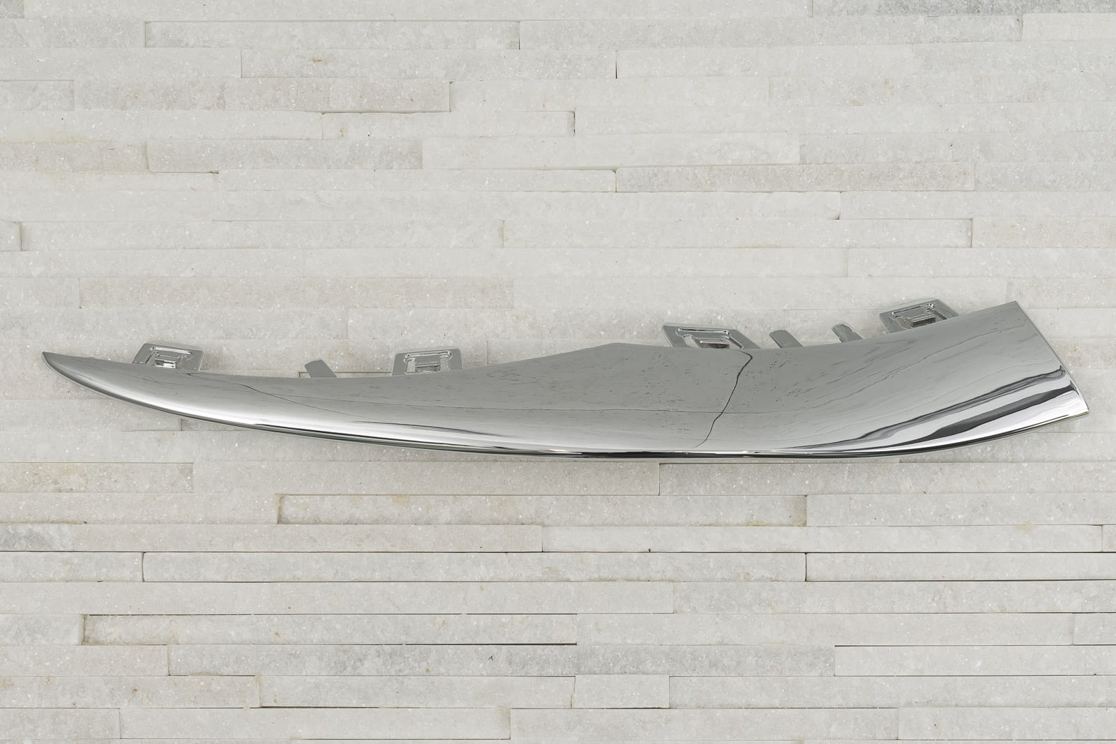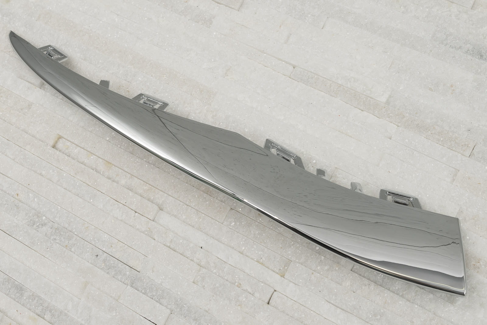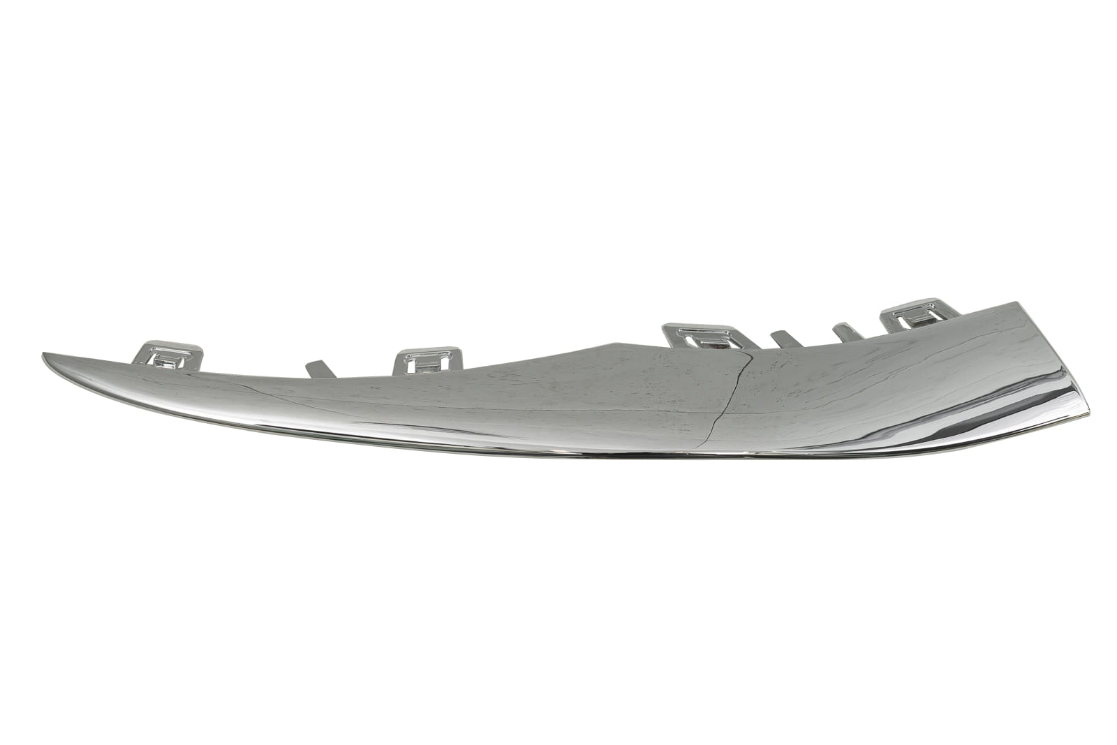 Chromowana listwa przedniego zderzaka, lewa, dla MERCEDES KLASY C (W205) 2019-2021 (wersja po faceliftingu). Pasuje do wersji z pakietem stylizacyjnym AMG (AMG Line).