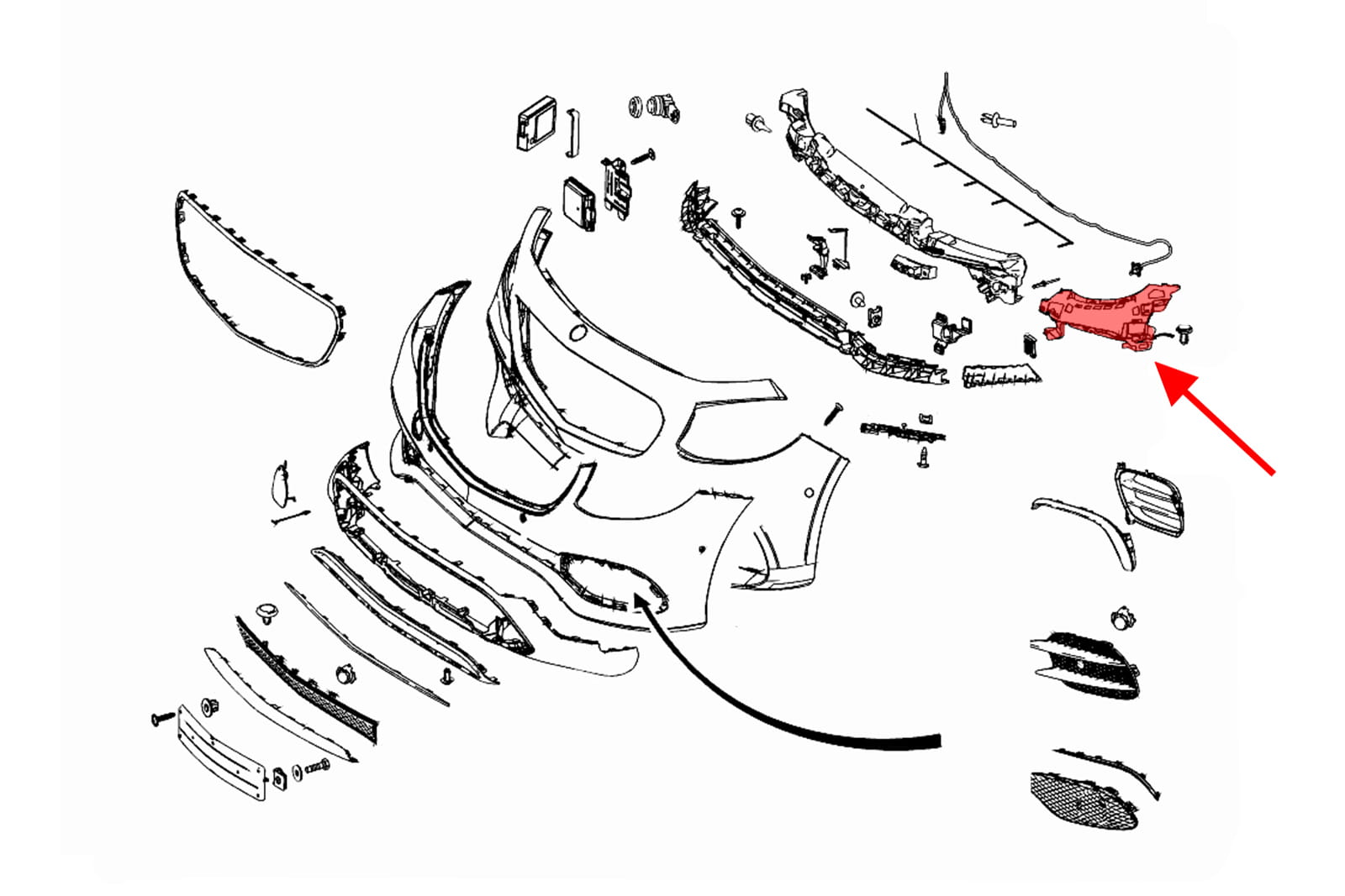 Ślizg przedniego zderzaka, lewy, dla MERCEDES KLASY E (W213) 2016-2020 (wersja przed liftingiem). W wersji Sedan/Combi/Coupe. Pasuje do wersji z pakietem stylizacyjnym i pakietem E43 AMG, E53 AMG (nie pasuje do pakietu Luxury).