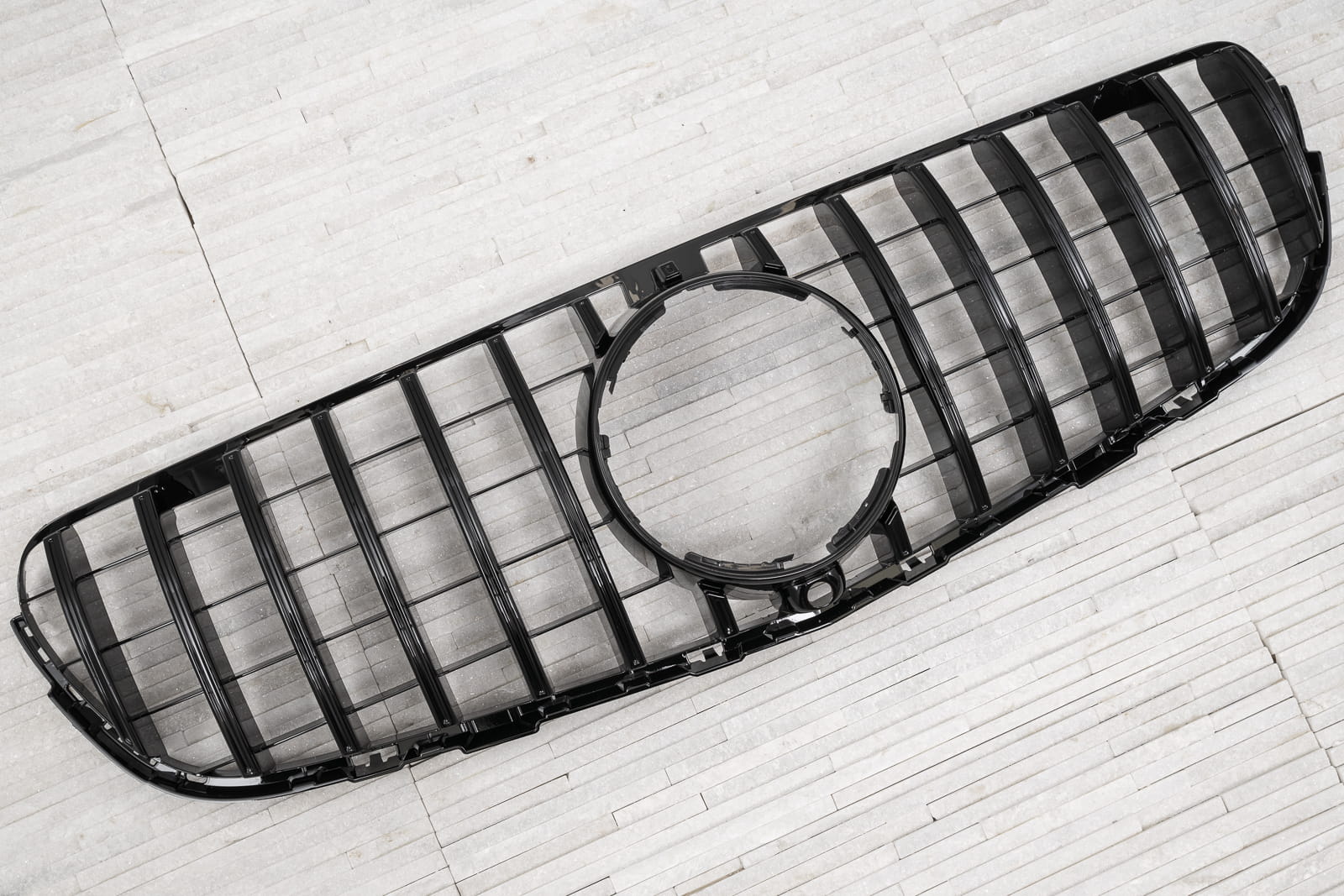 Grill przedni, model GT / PANAMERICANA zaprojektowany dla MERCEDES GLC (X253) 2015-2019 (wersja przed liftingiem). WERSJA Z FABRYCZNĄ KAMERĄ.