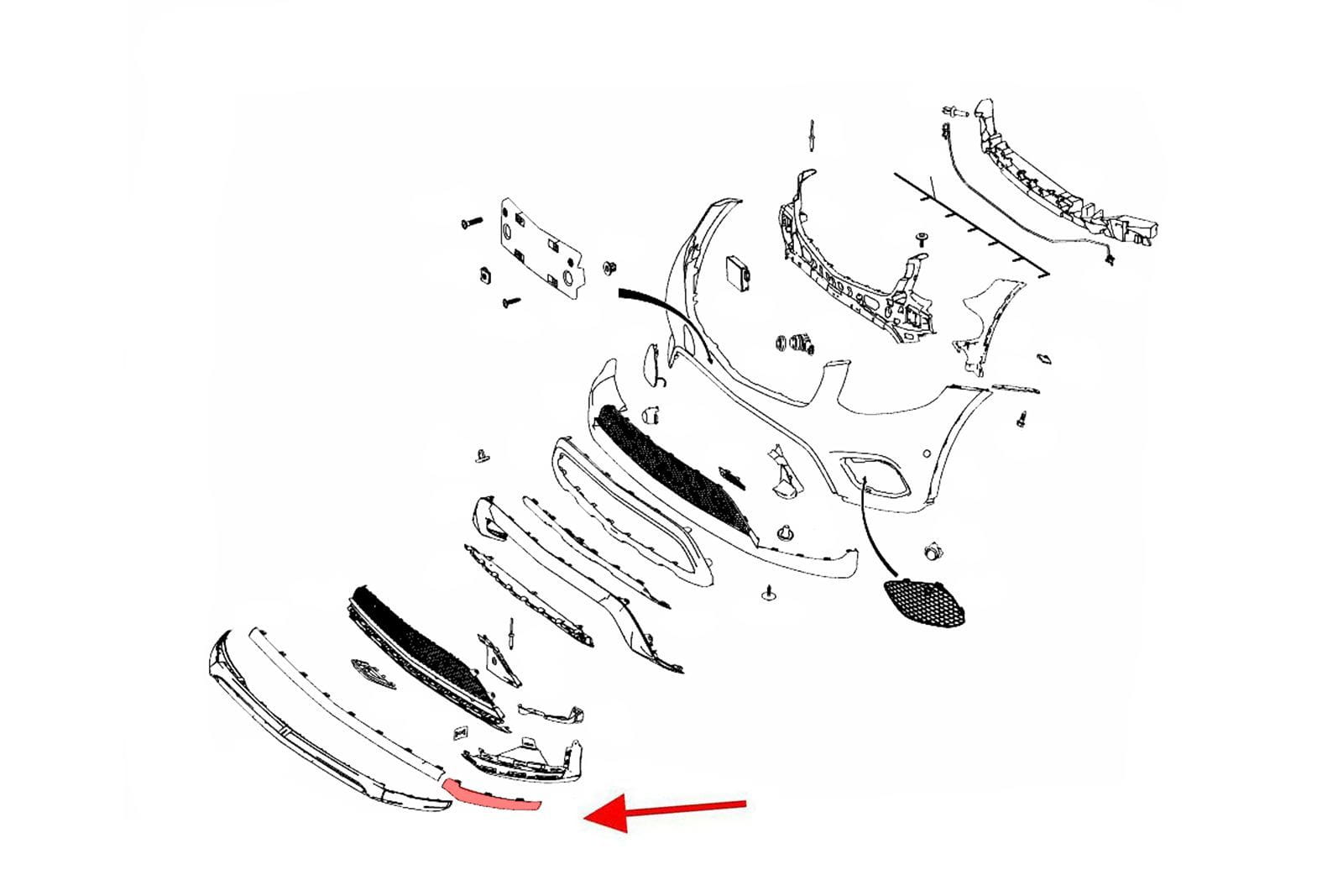 Chromowana listwa przedniego zderzaka, lewa, dla MERCEDES GLC (X253) 2015-2019 (przed faceliftingiem).