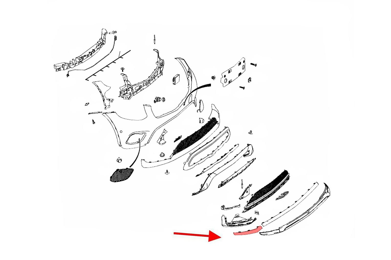 Chromowana listwa przedniego zderzaka, prawa, dla MERCEDES GLC (X253) 2015-2019 (przed faceliftingiem).