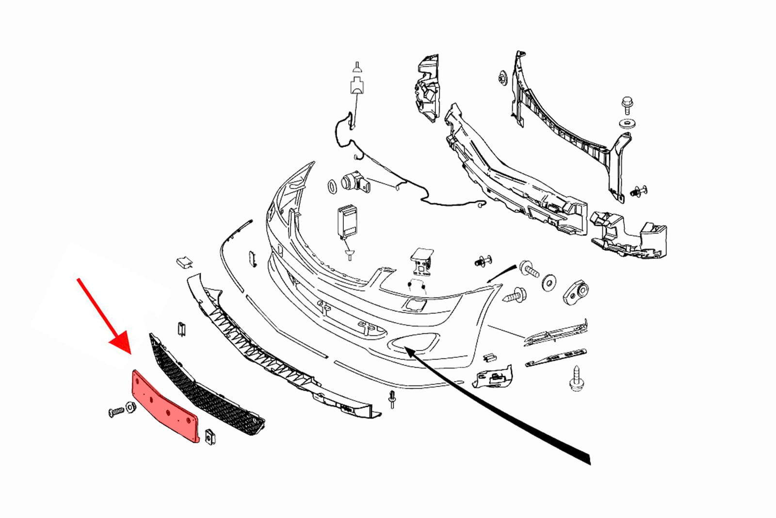 MERCEDES S-CLASS W221 2005-2013 MOCOWANIE PRZEDNIEJ TABLICY REJESTRACYJNEJ A2218850781