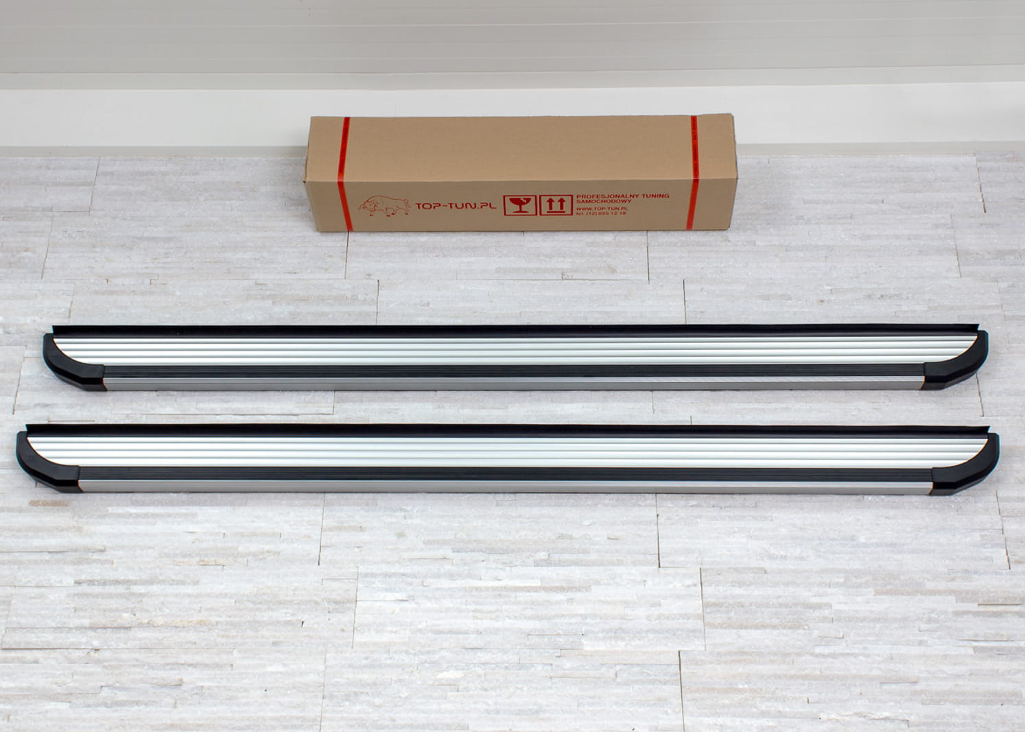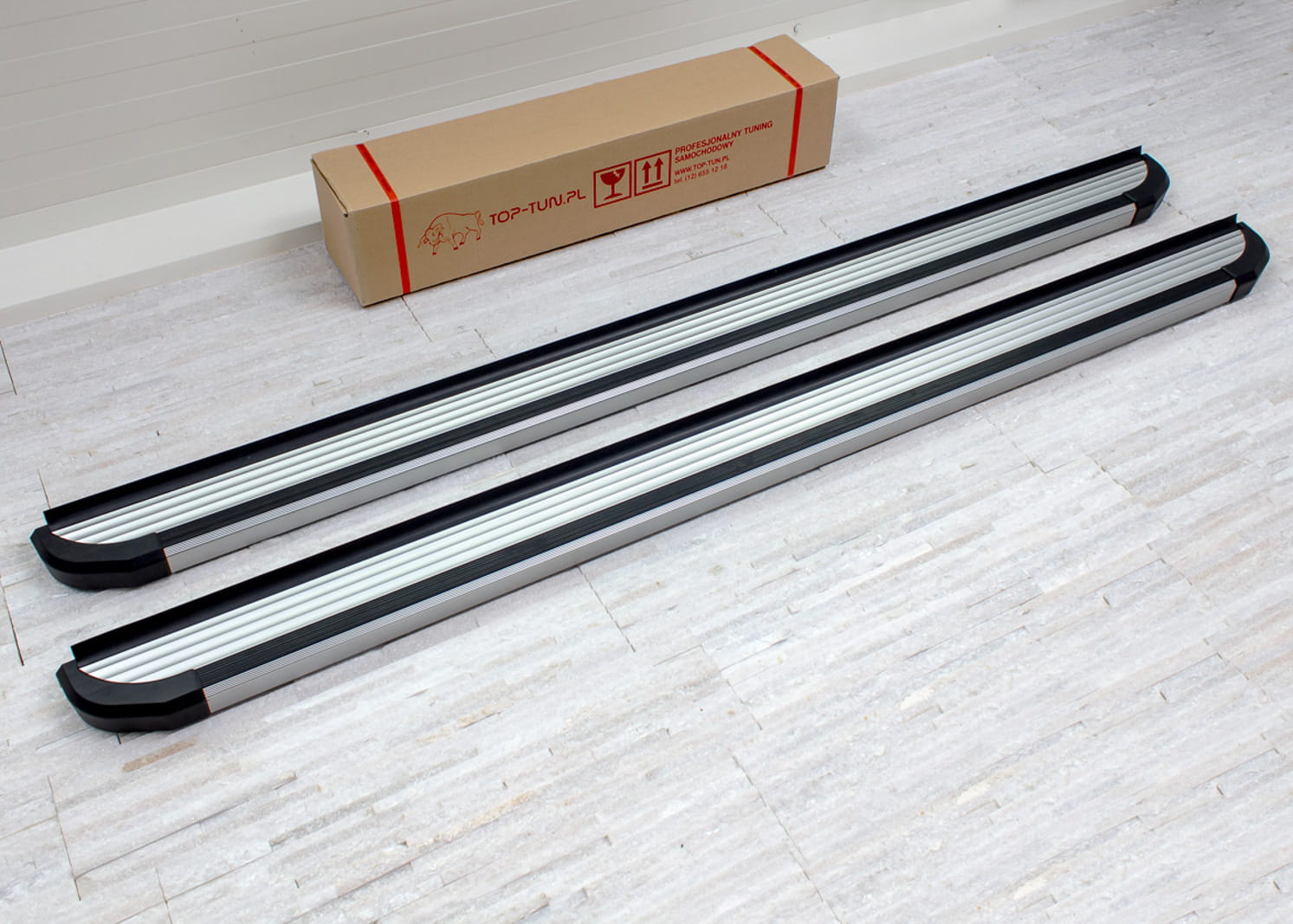 W zestawie komplet stopni bocznych (prawy i lewy), elementy montażowe oraz instrukcja. Progi montowane są na fabrycznych punktach montażowych. Montaż stopni nie wymaga wiercenia dodatkowych otworów! Zalecamy profesjonalny montaż w warsztacie (z doświadczenia wiemy że najlepiej skorzystać z usług zakładu lakierniczego lub blacharskiego ponieważ to te zakłady zajmują się najczęściej montażem listew, dokładek oraz stopni, więc montaż dla tych zakładów jest czynnością intuicyjną).
