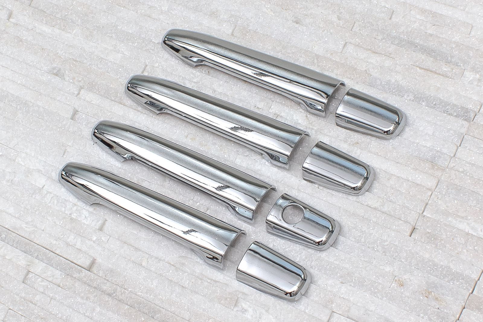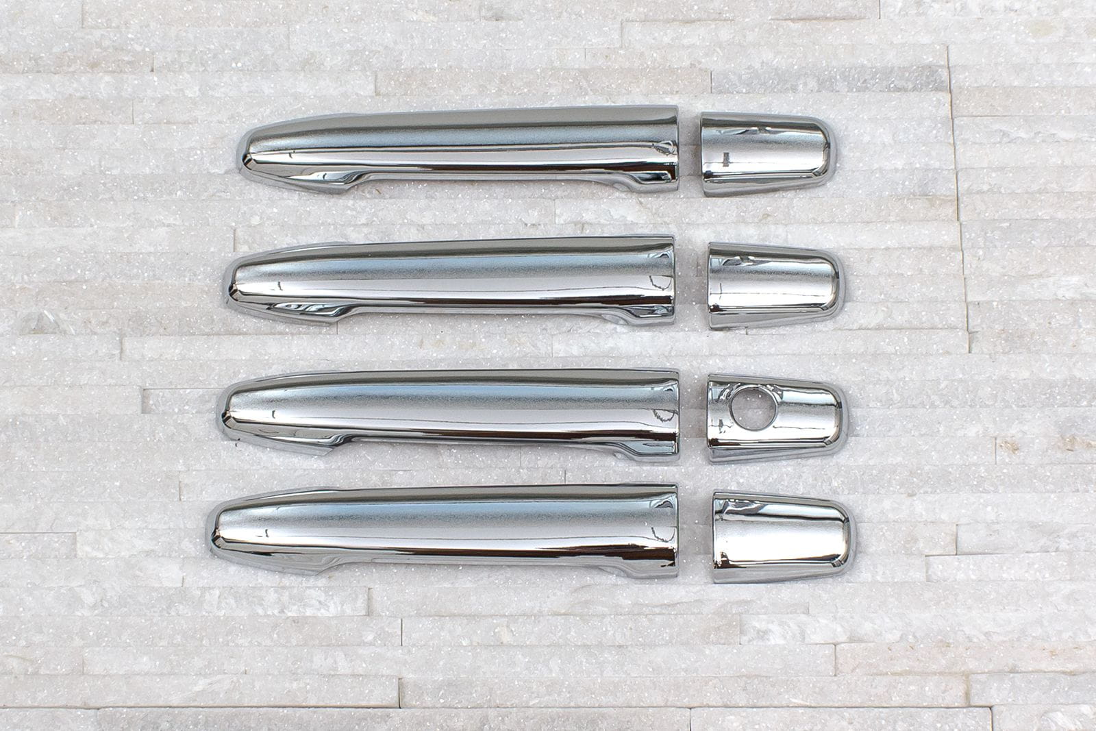 Dekoracyjne, chromowane nakładki na klamki to dodatek, który uzupełnia stylizację samochodu nutą sportowej elegancji. Idealnie dopasowane do linii samochodu, odmieniają wizerunek klamek modelu LANCER VII, czyniąc z nich prawdziwą ozdobę samochodu. Produkt wykonany z wysokiej jakości chromowanego tworzywa ABS.