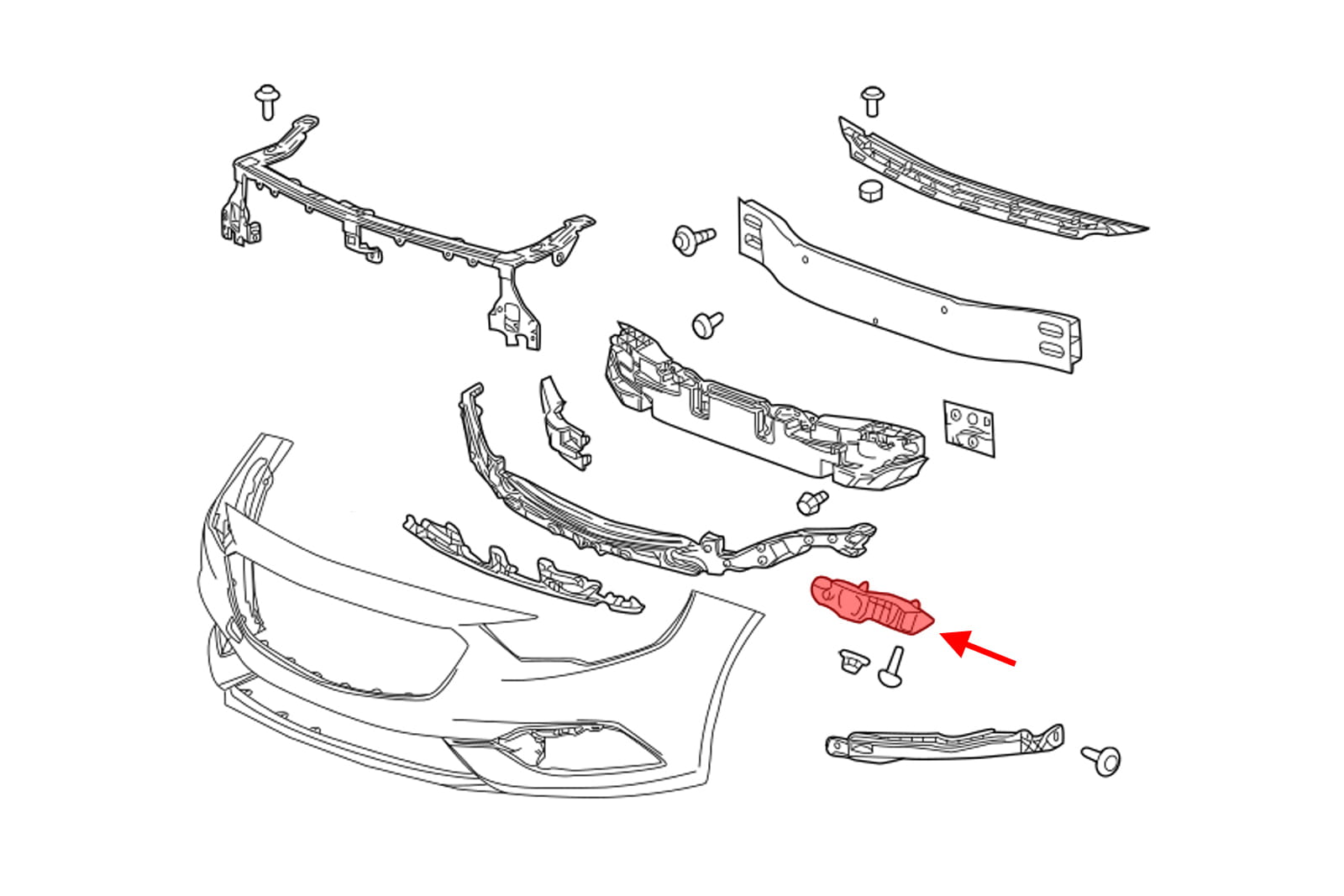 Element mocujący poszycie zderzaka przedniego / ślizg prawy, dla OPEL INSIGNIA B (Z18) 2017+.