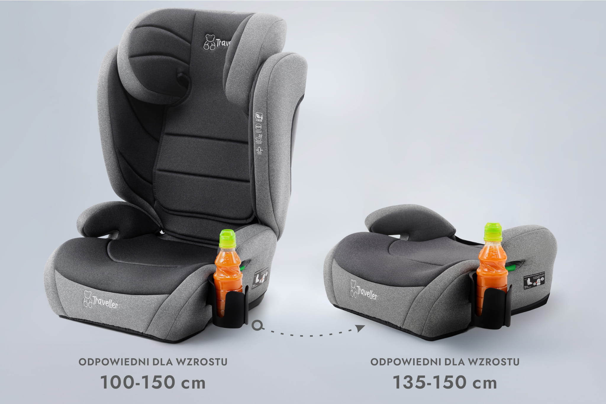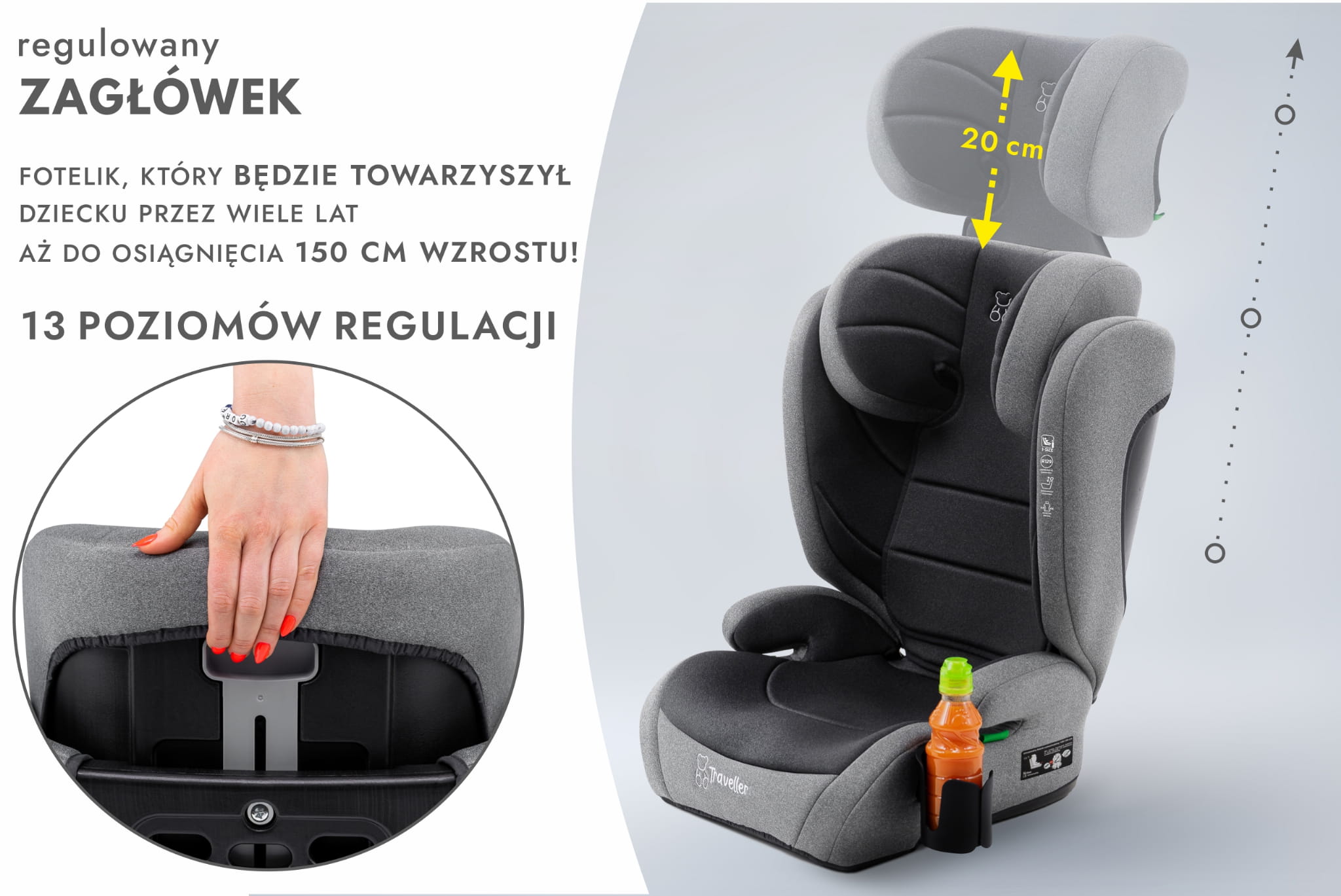 Fotelik rośnie razem z dzieckiem i może być użytkowany do momentu osiągnięcia 150 cm wzrostu (ok. 12 roku życia).