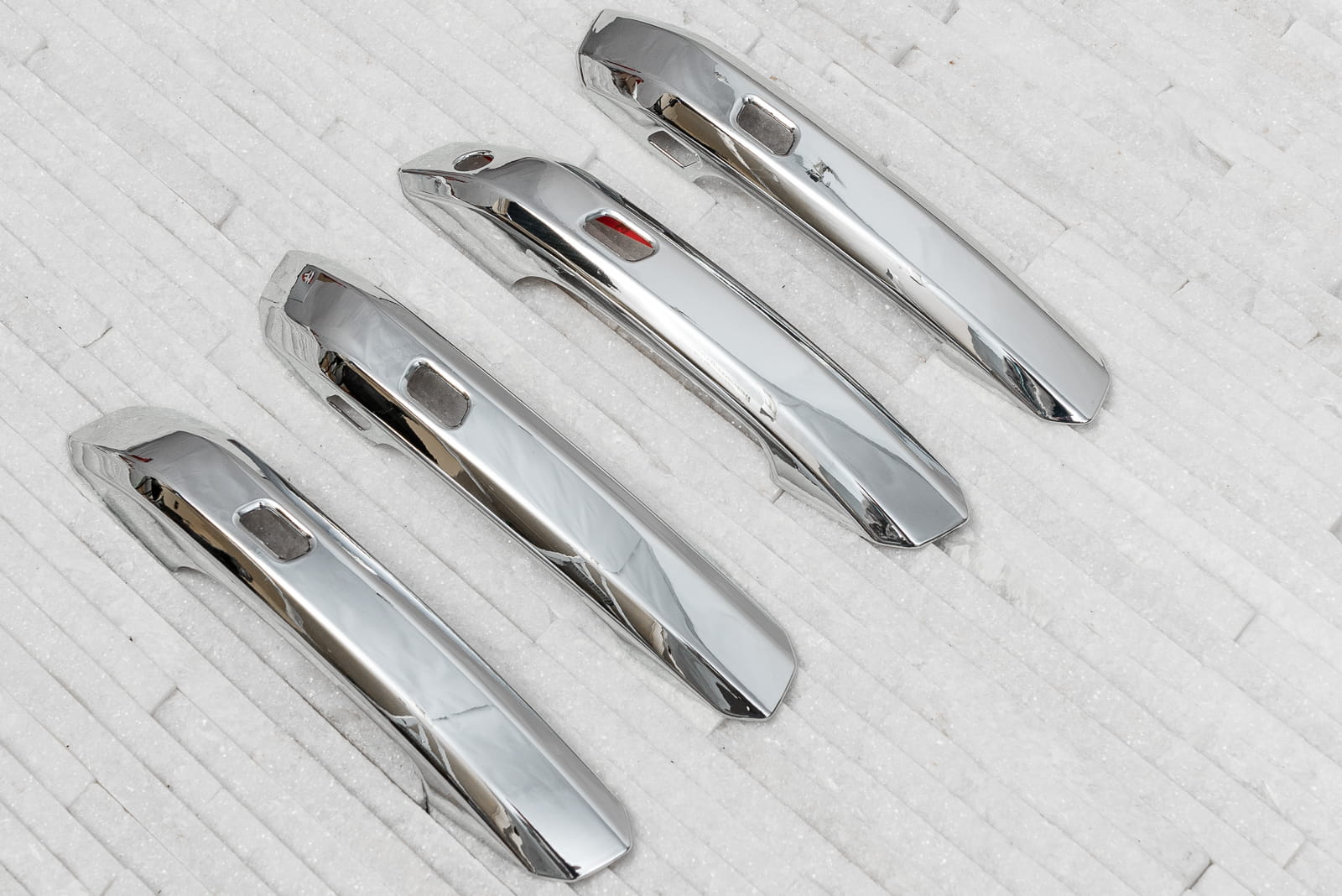 Chromowane nakładki na klamki zaprojektowane dla AUDI Q5 II (FY) 2017-2019 (wersja przed faceliftingiem, z sensorem). Dekoracyjne, chromowane nakładki na klamki to dodatek, który uzupełnia stylizację samochodu nutą sportowej elegancji. Idealnie dopasowane do linii samochodu, odmieniają wizerunek klamek modelu A4L, czyniąc z nich prawdziwą ozdobę samochodu. Produkt wykonany z wysokiej jakości chromowanego tworzywa ABS.