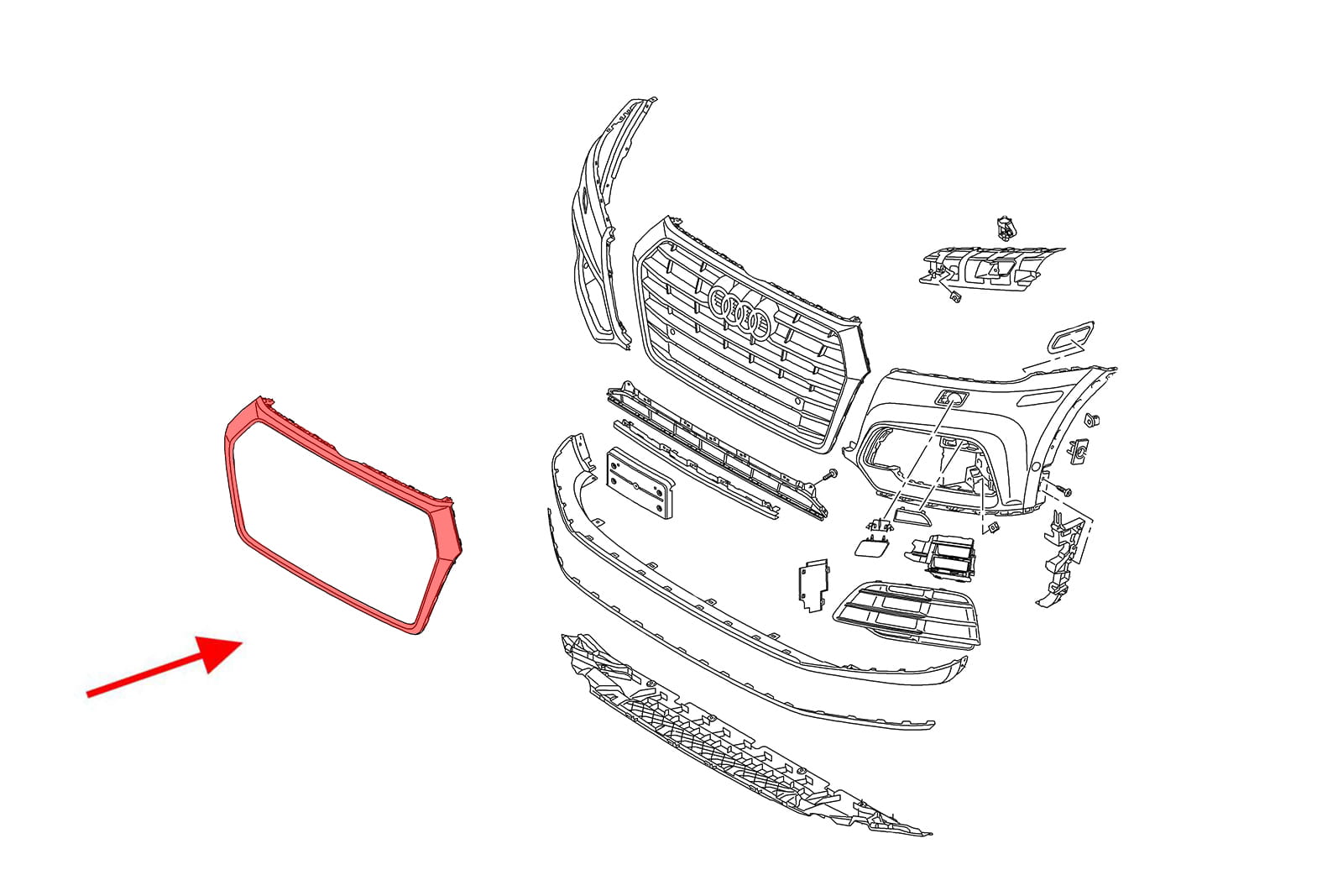 Chromowana ramka grilla, dla AUDI Q7 / SQ7 (4M) 2015-2020 (wersja przed faceliftingiem).