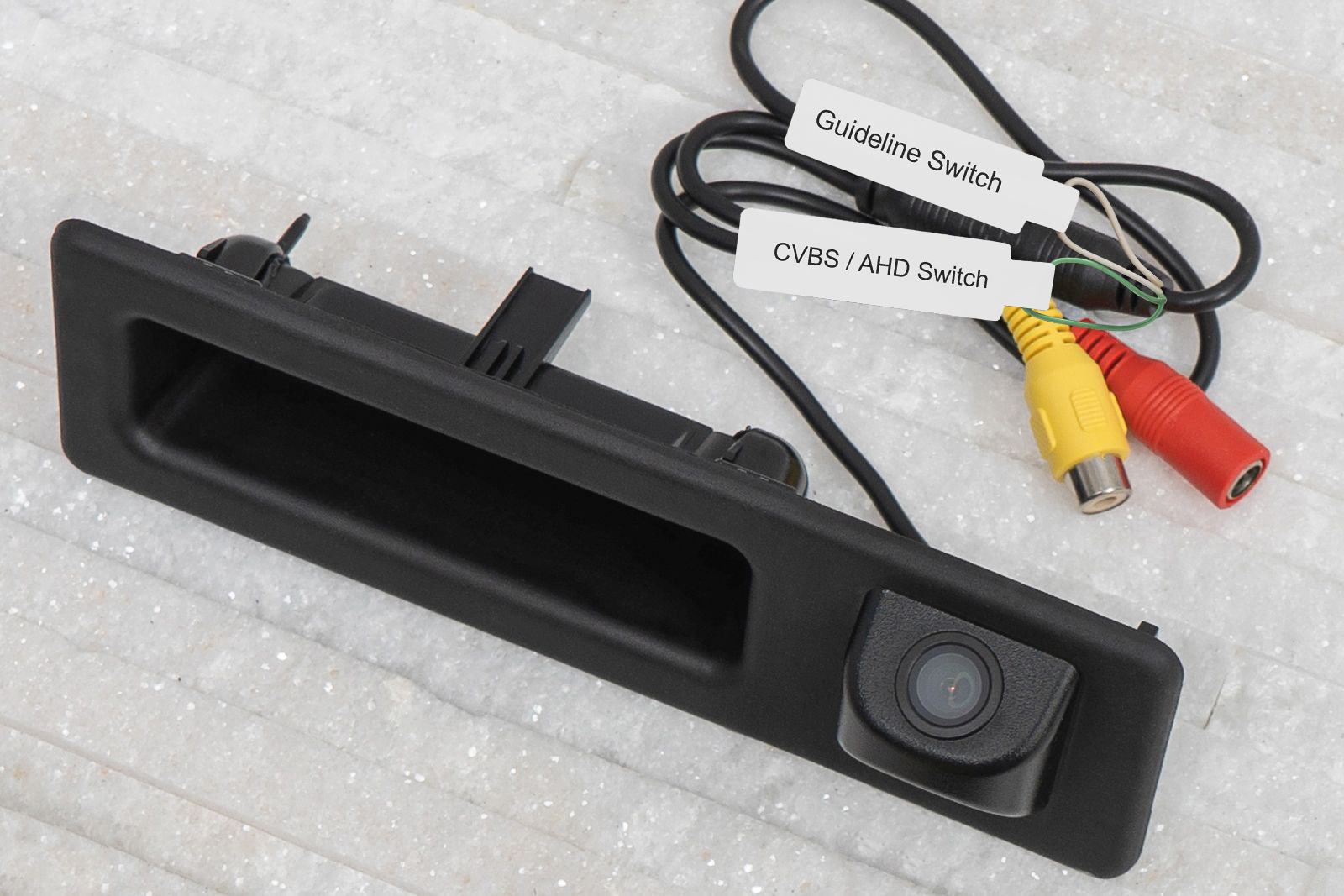 Kamera cofania FULL HD zintegrowana z klamką klapy tylnej, z funkcją dynamicznych linii prowadzących, dedykowana dla BMW Serii 3 (F30) Sedan 2011-2018.