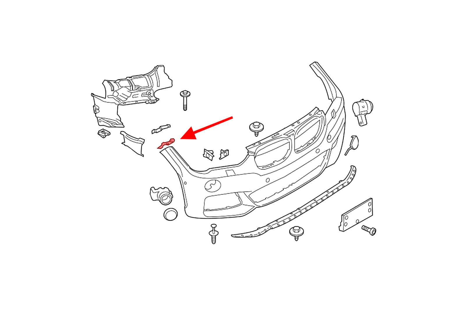 Element mocujący poszycie zderzaka przedniego, ślizg prawy, dla BMW X1 (F48, F48N) 2015-2022.