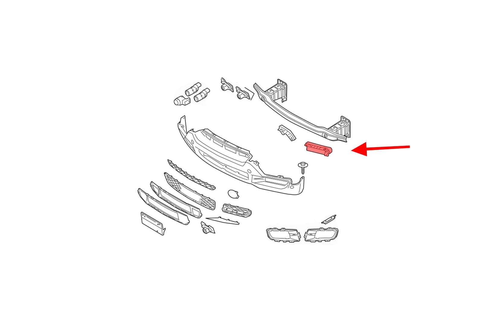 Element mocujący poszycie zderzaka przedniego, ślizg lewy, dla BMW X5 (E70) 2006-2013. Nie pasuje do wersji z pakietem M (M-Pakiet).