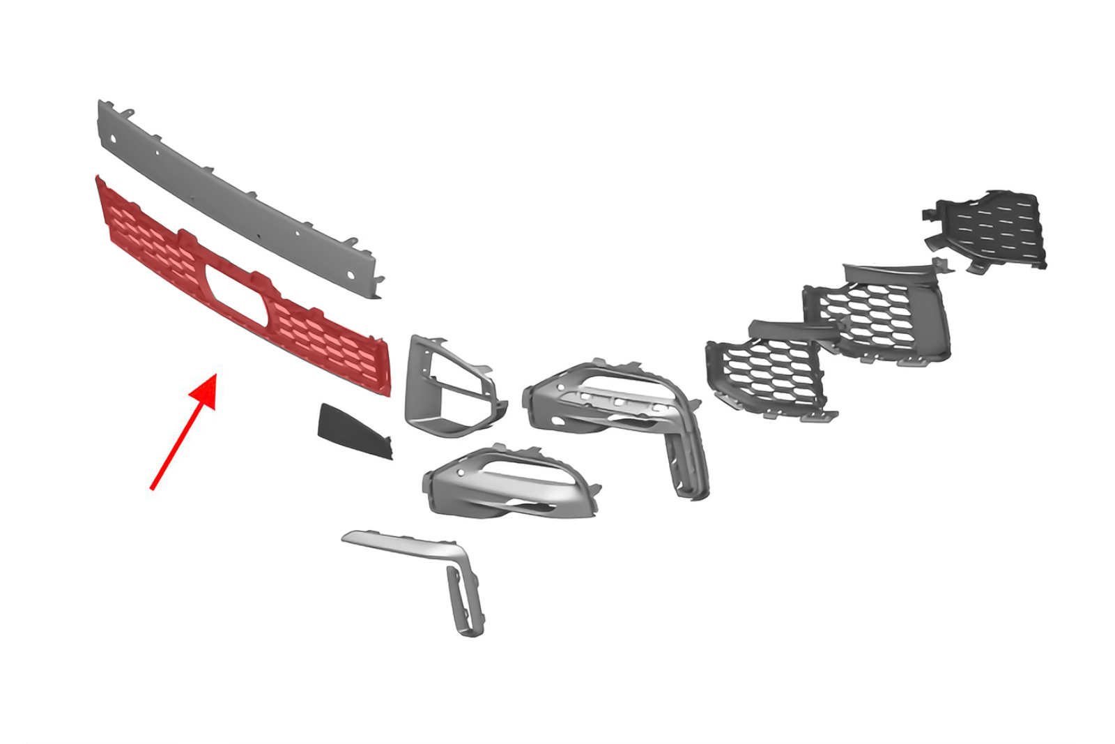 Kratka przedniego zderzaka z otworem pod radar, środkowa, dedykowana dla BMW X5 (G05) 2018-2023 (wersja przed faceliftingiem). Nie pasuje do wersji z pakietem M (M-Pakiet).