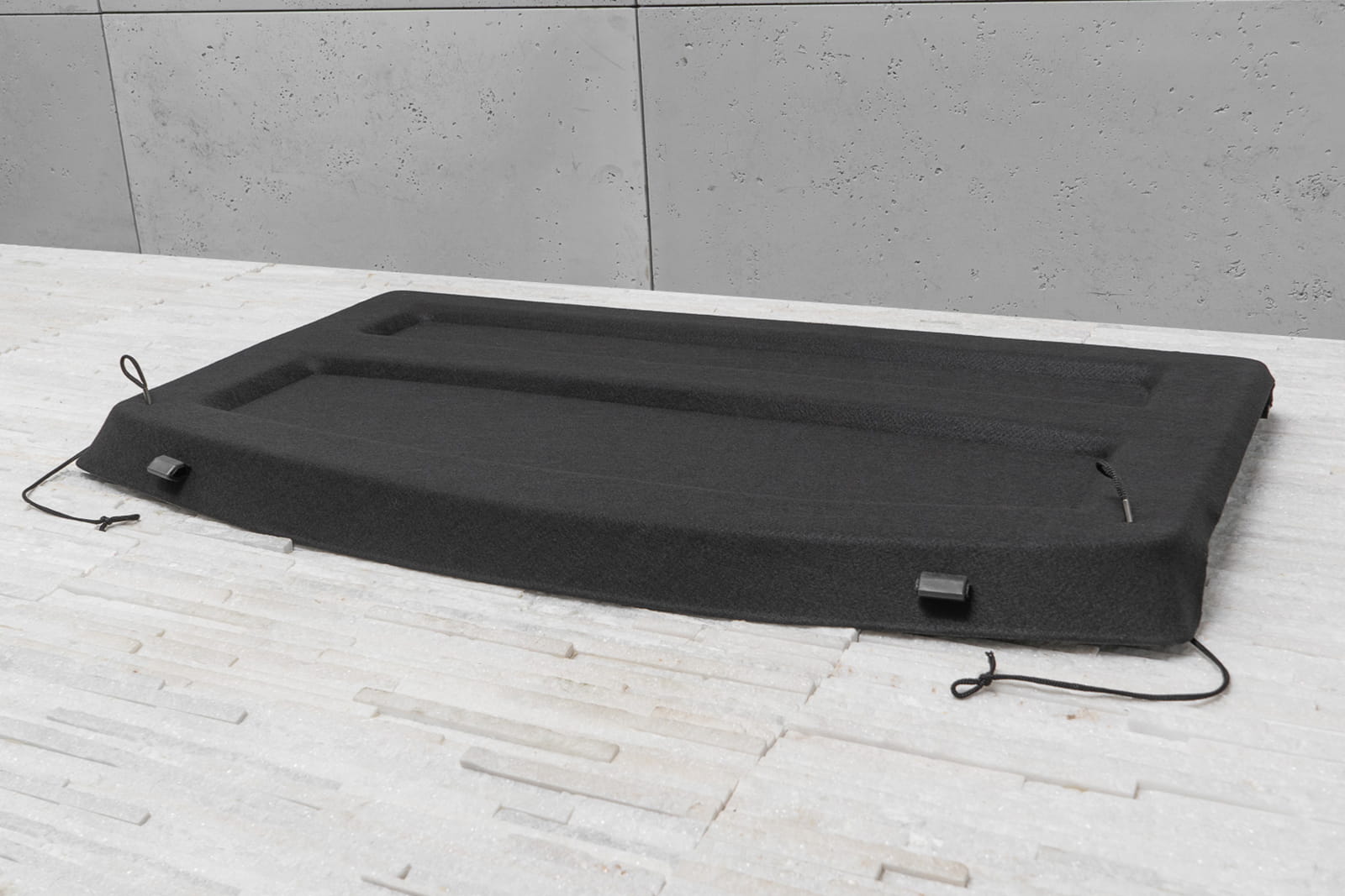Akcesoryjna półka pozwala na zakrycie wnętrza bagażnika, tym samym zmniejszając ryzyko kradzieży przewożonych przedmiotów. Półka obita została wysokiej jakości materiałem o wysokiej odporności na uszkodzenia mechaniczne, działanie wysokich i niskich temperatur, a także na odbarwianie się od słońca. Produkt fabrycznie nowy, oryginalnie zapakowany.