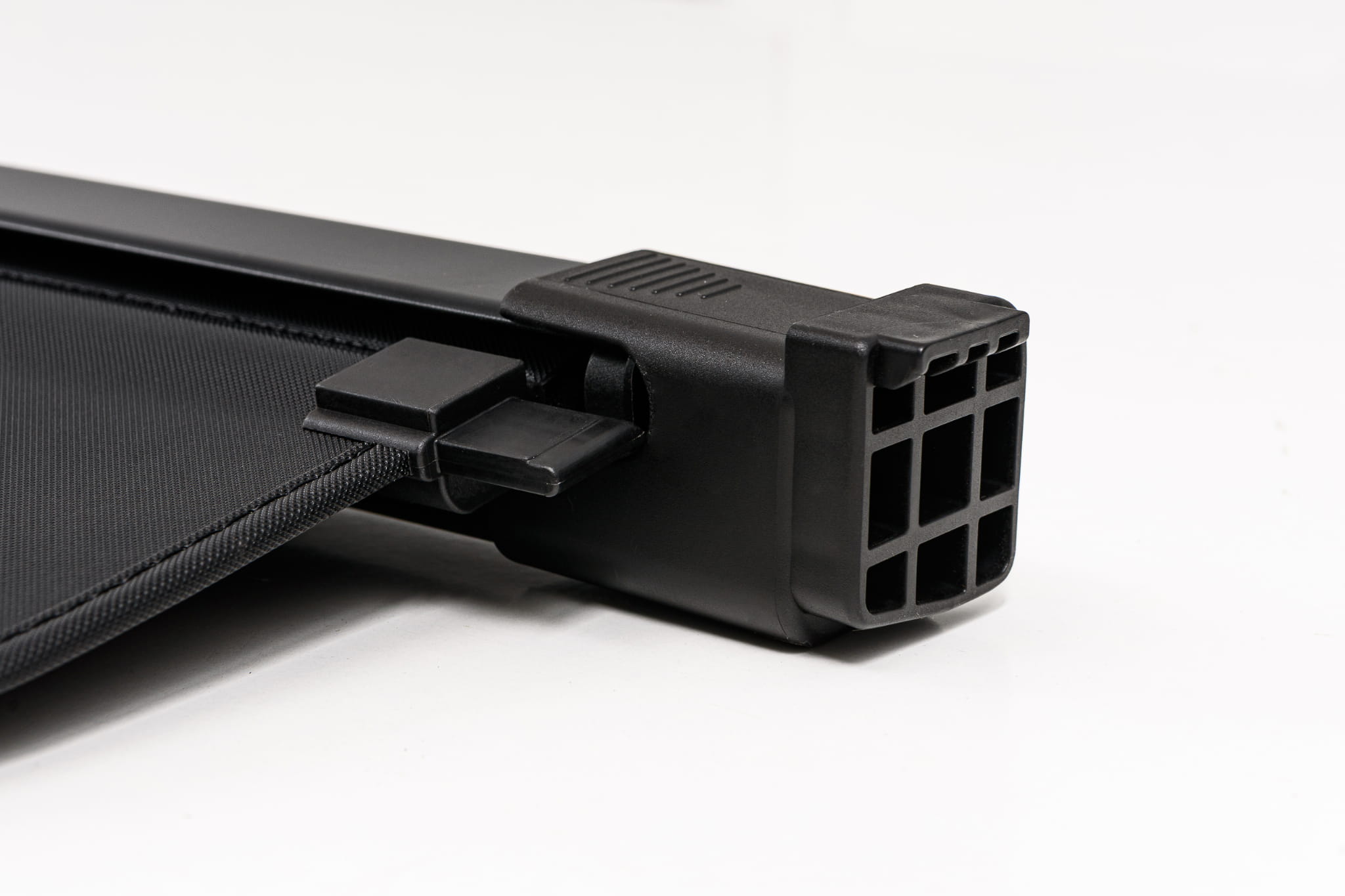 Elegancki czarny kolor oraz estetyka wykonania sprawiają, że roleta doskonale współgra ze stylem samochodu. Poszycie zasłony wykonane zostało z materiału odpornego na uszkodzenia oraz odbarwienia spowodowane nasłonecznieniem i zmianami temperatur, dzięki czemu produkt doskonale prezentuje się przez długi czas. Solidna kaseta oraz aluminiowa płyta zapewniają trwałość konstrukcji i wygodę użytkowania rolety. Zalecamy montaż profesjonalny.