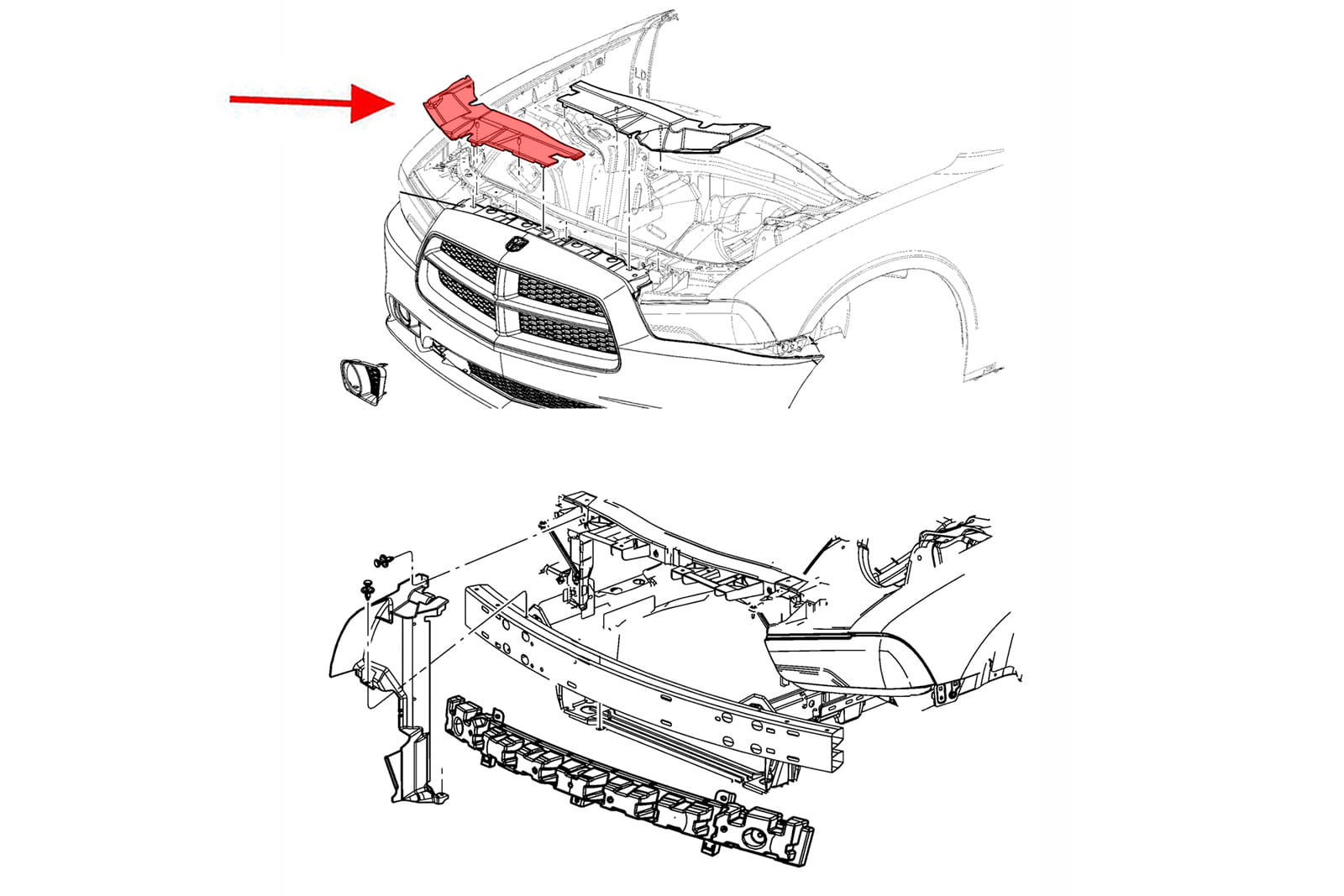 Górna osłona chłodnicy, prawa, dla DODGE CHARGER II 2010-2014 (wersja przed faceliftingiem).