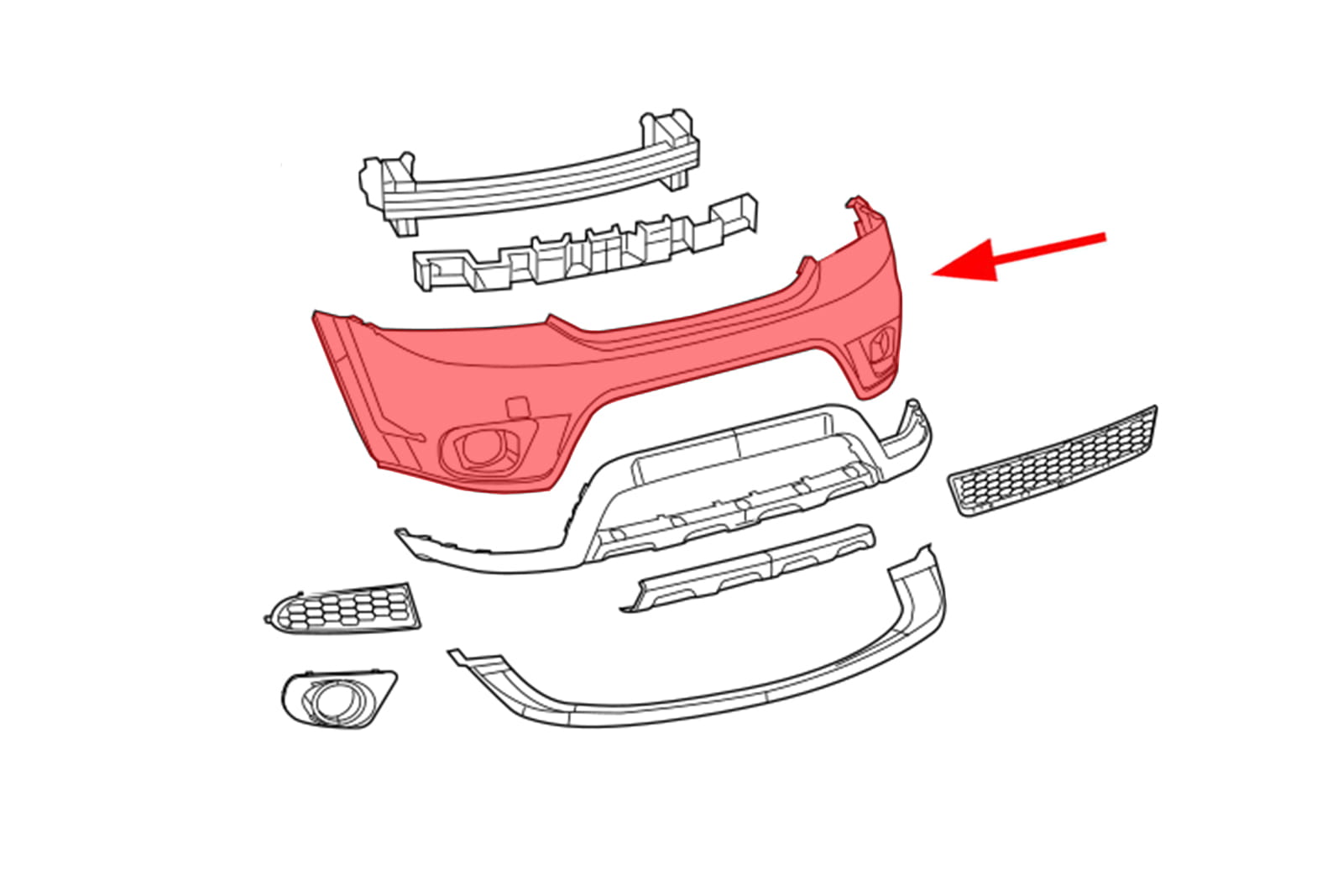 Zderzak przedni górny bez otworów pod spryskiwacze, dla DODGE JOURNEY I 2010-2020 (wersja po faceliftingu).