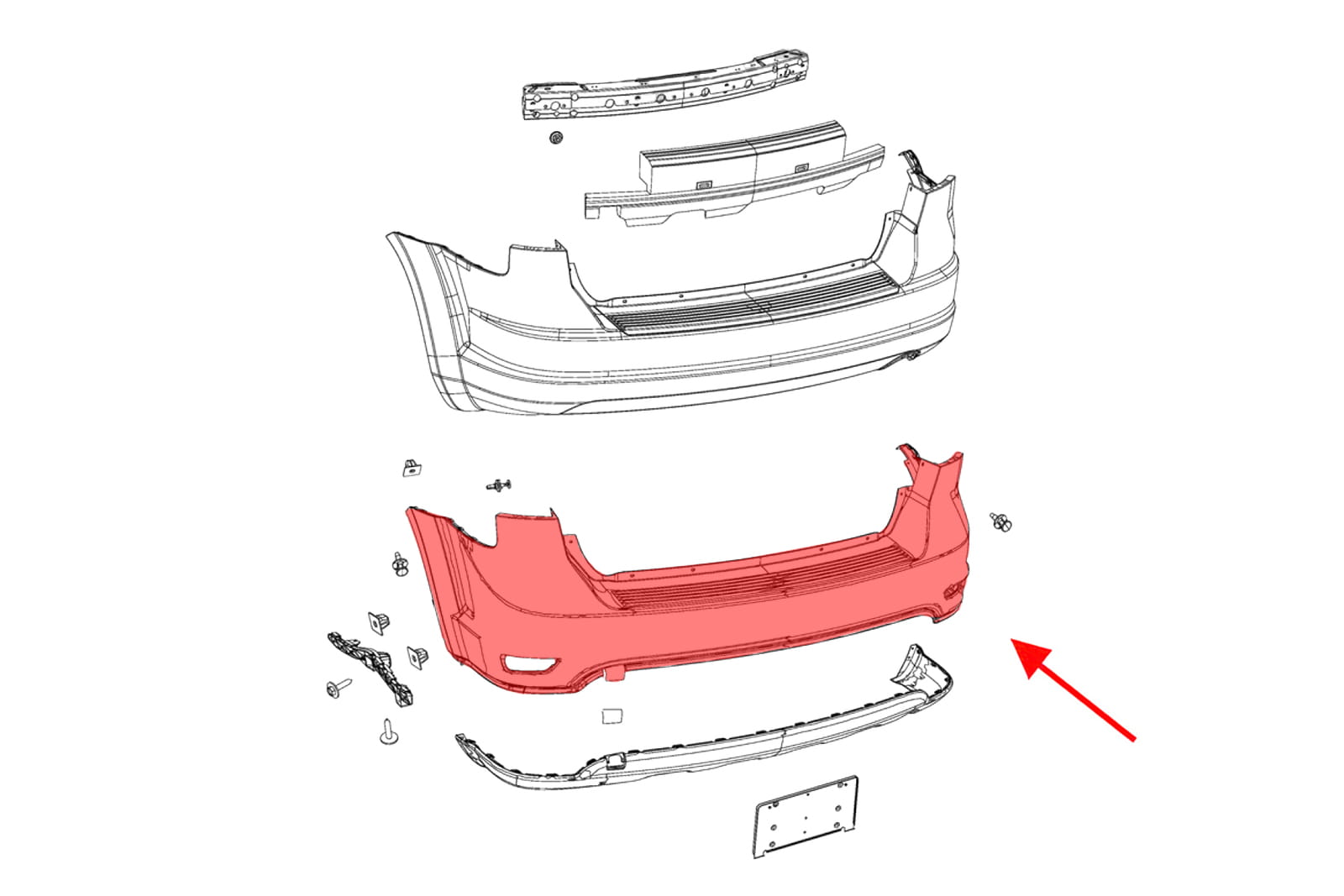 Zderzak tylny z otworami pod PDC, dla DODGE JOURNEY I 2010-2020 (wersja po faceliftingu).