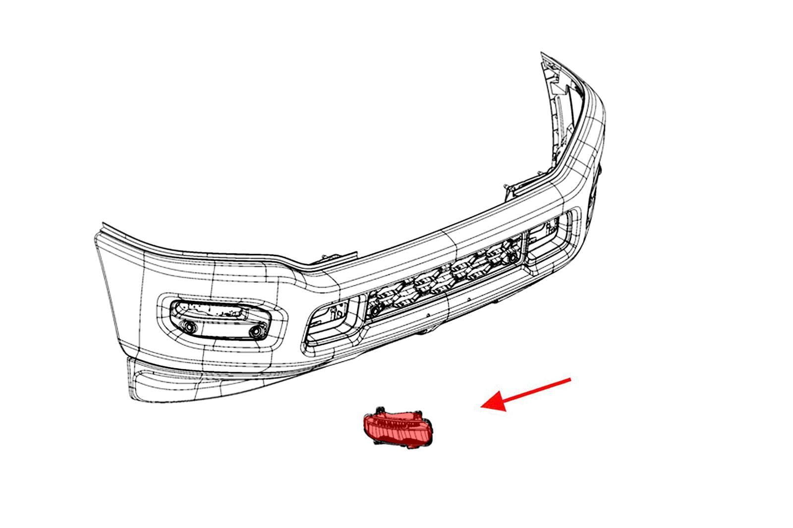 Lampa przeciwmgielna LED, halogen przedni prawy, do DODGE RAM 1500 2018+.