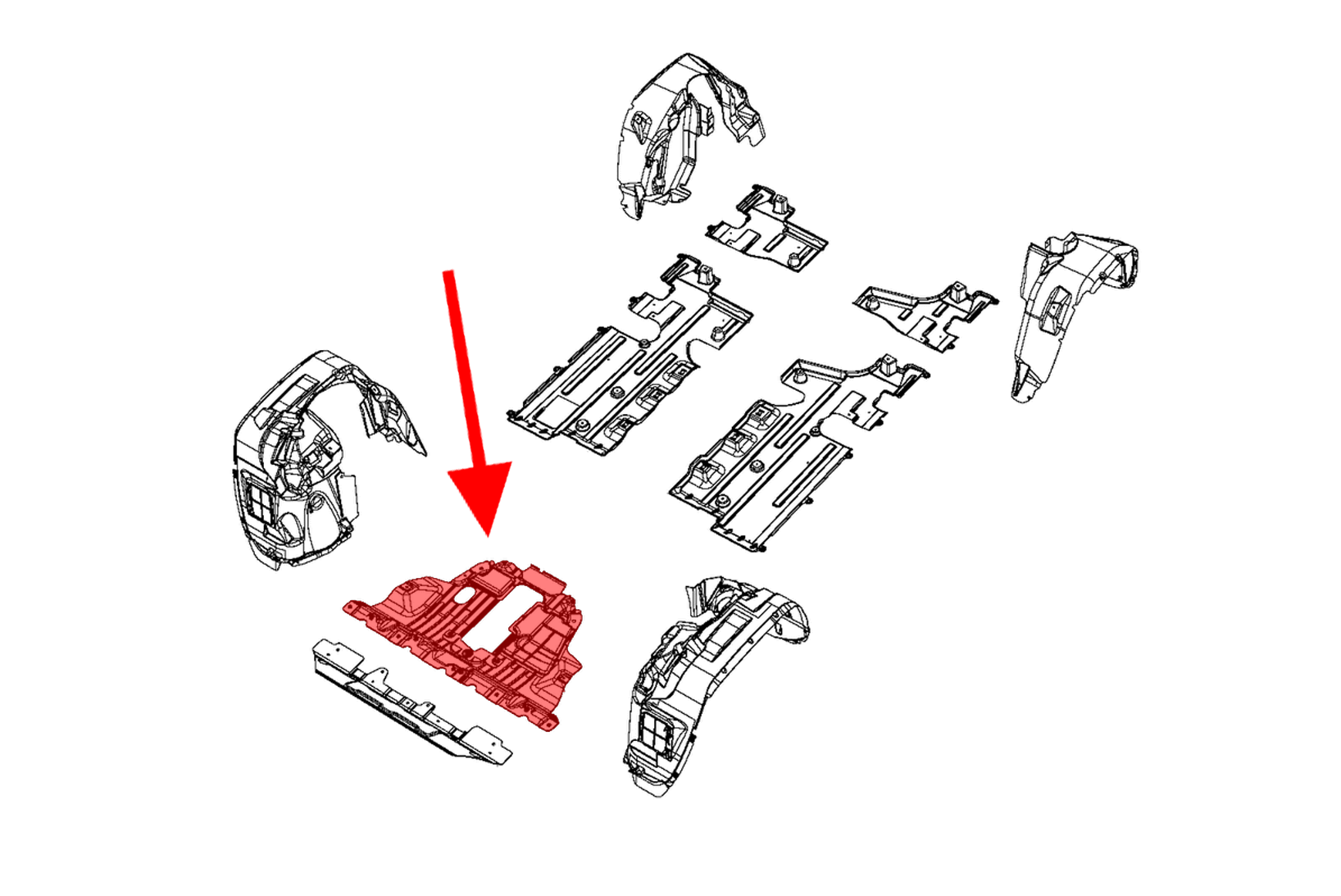 Środkowa osłona podwozia z kompletem śrub mocujących płyta pod silnik, dla FIAT 500X 2014-2024.